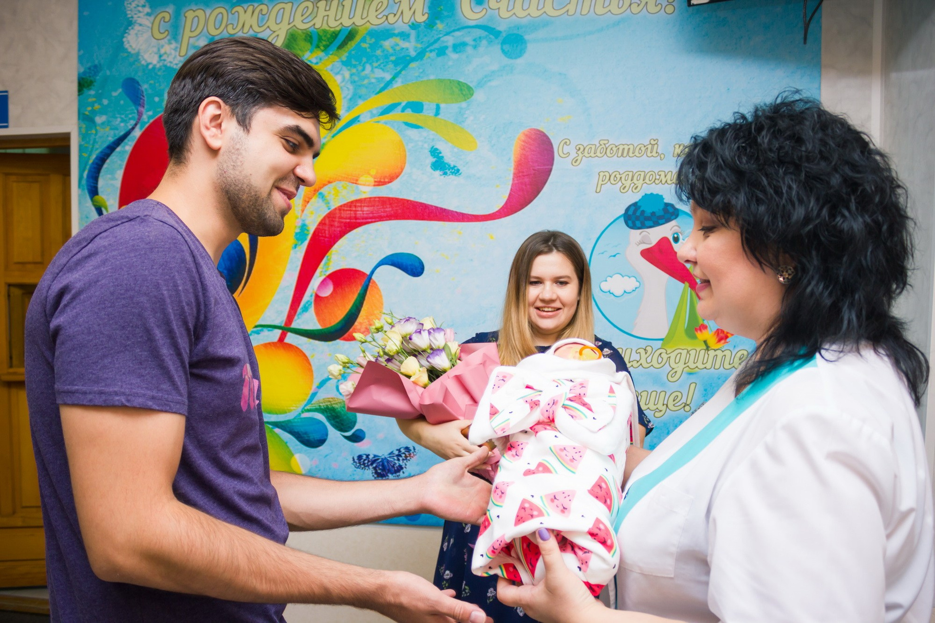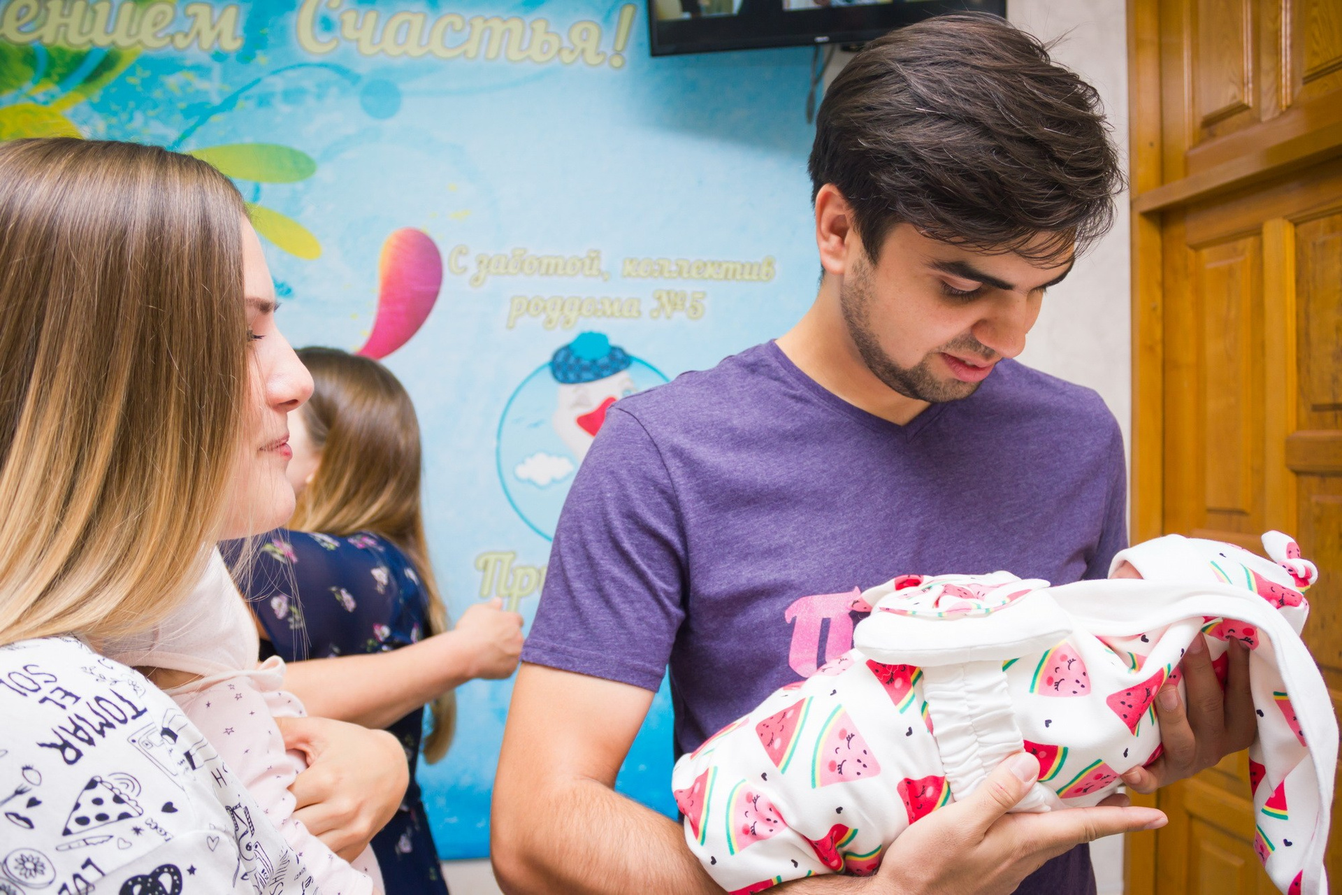 - несколько кадров в приёмном покое роддома (обычно там установлены фотозоны);