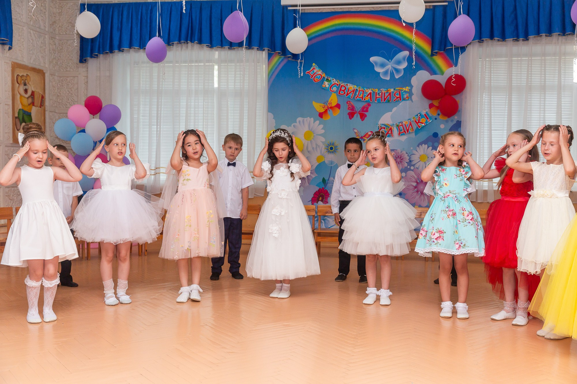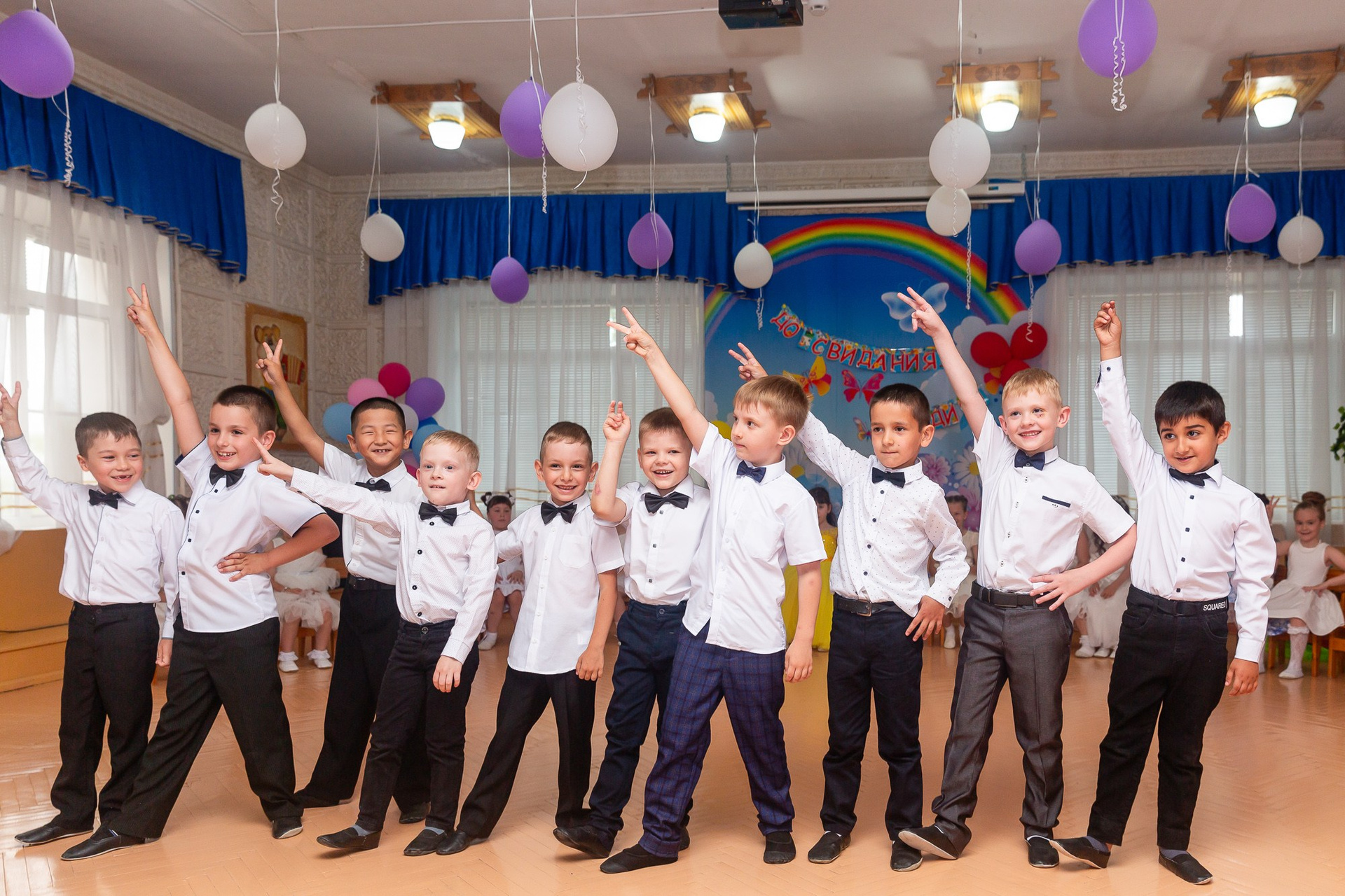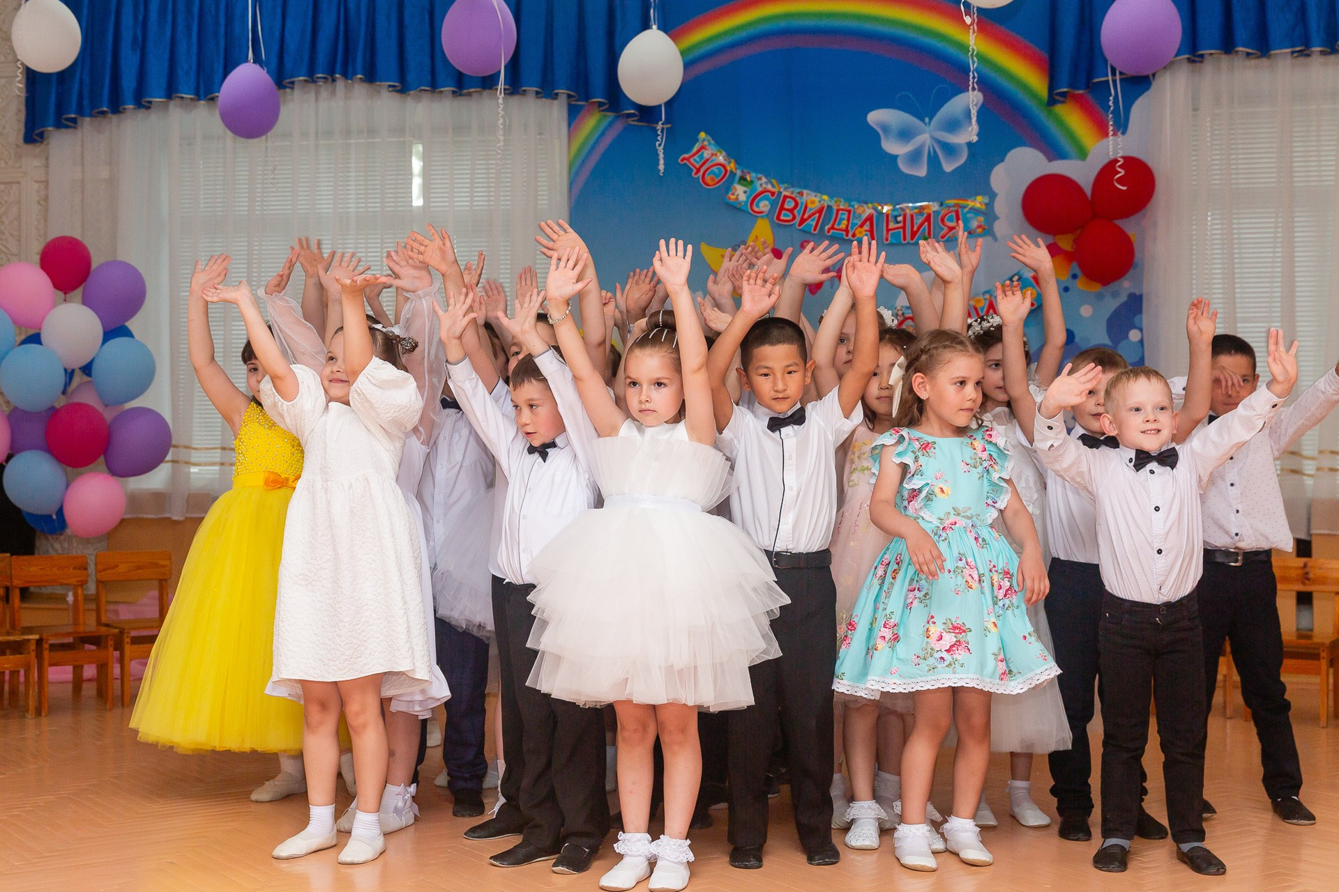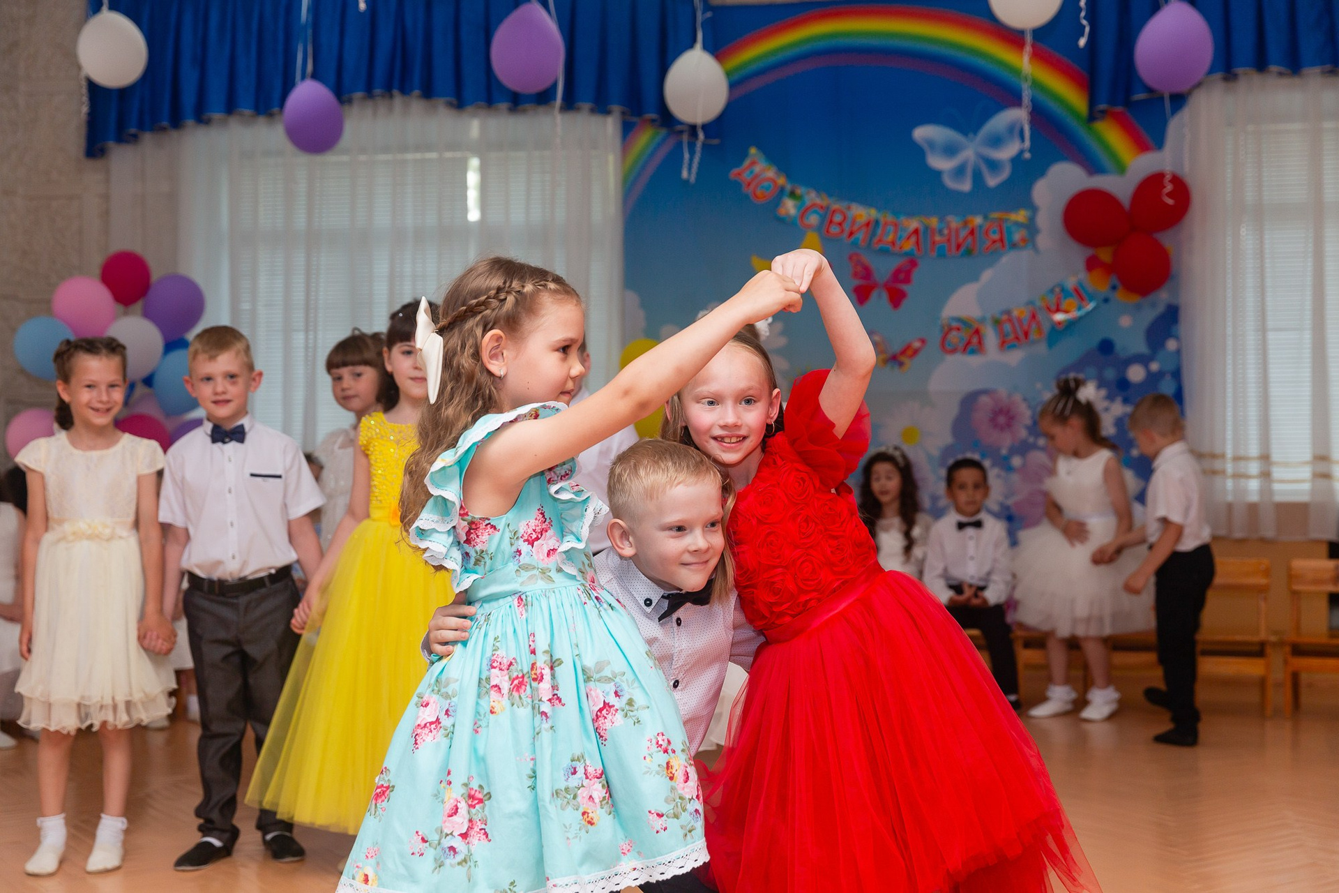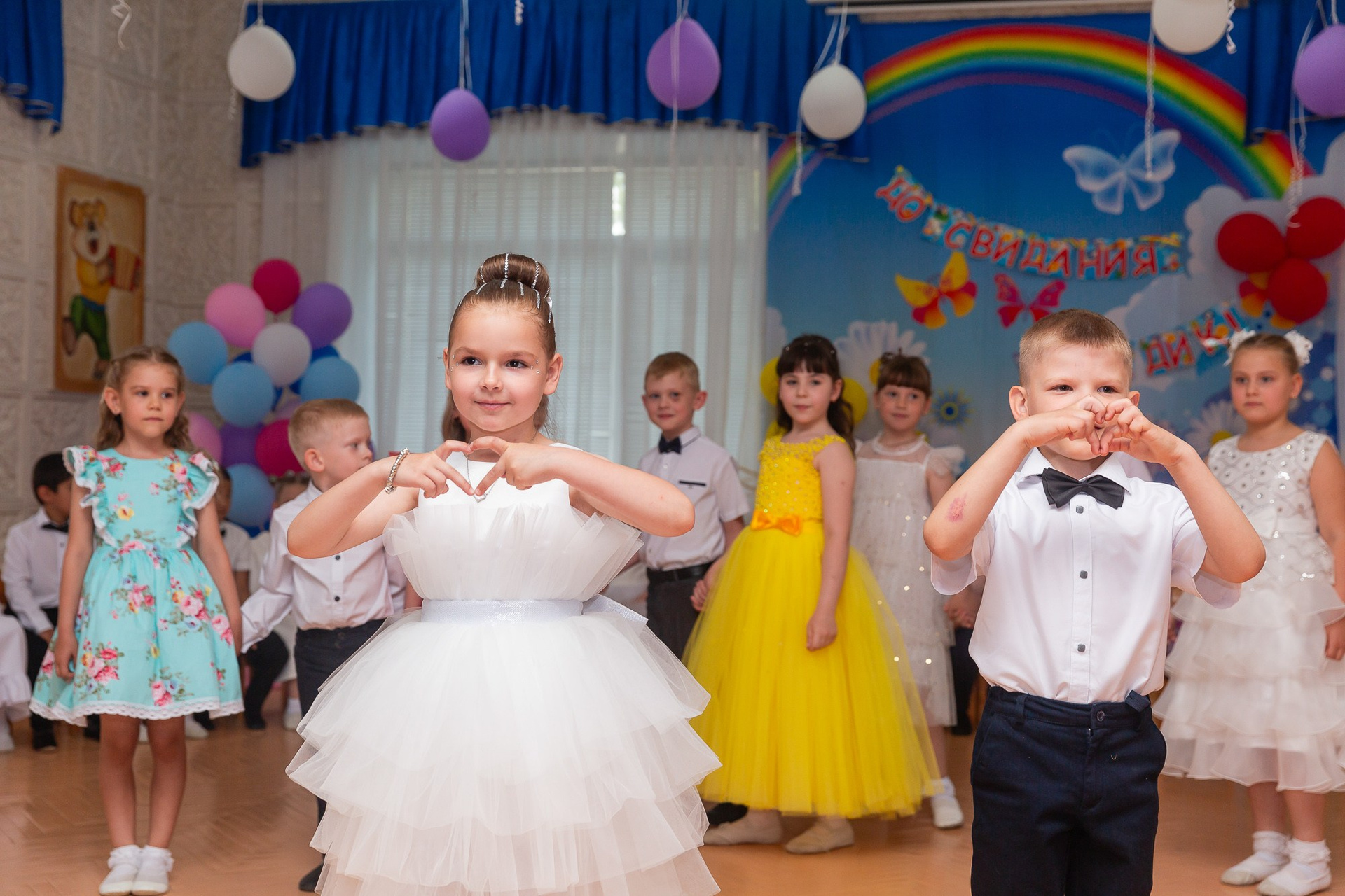 Съёмка выпускного в детсаду обычно занимает 2-3 часа и включает в себя: