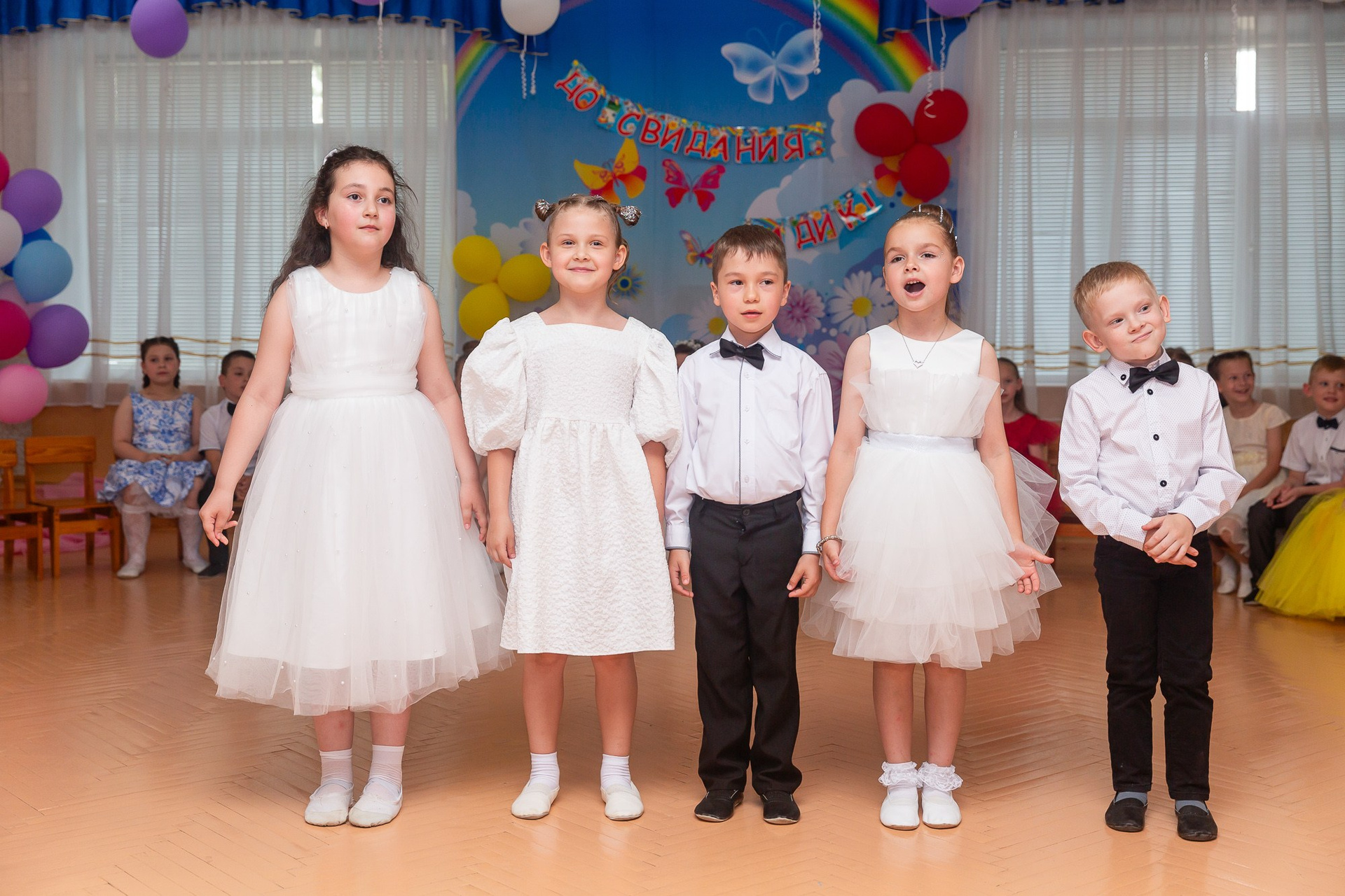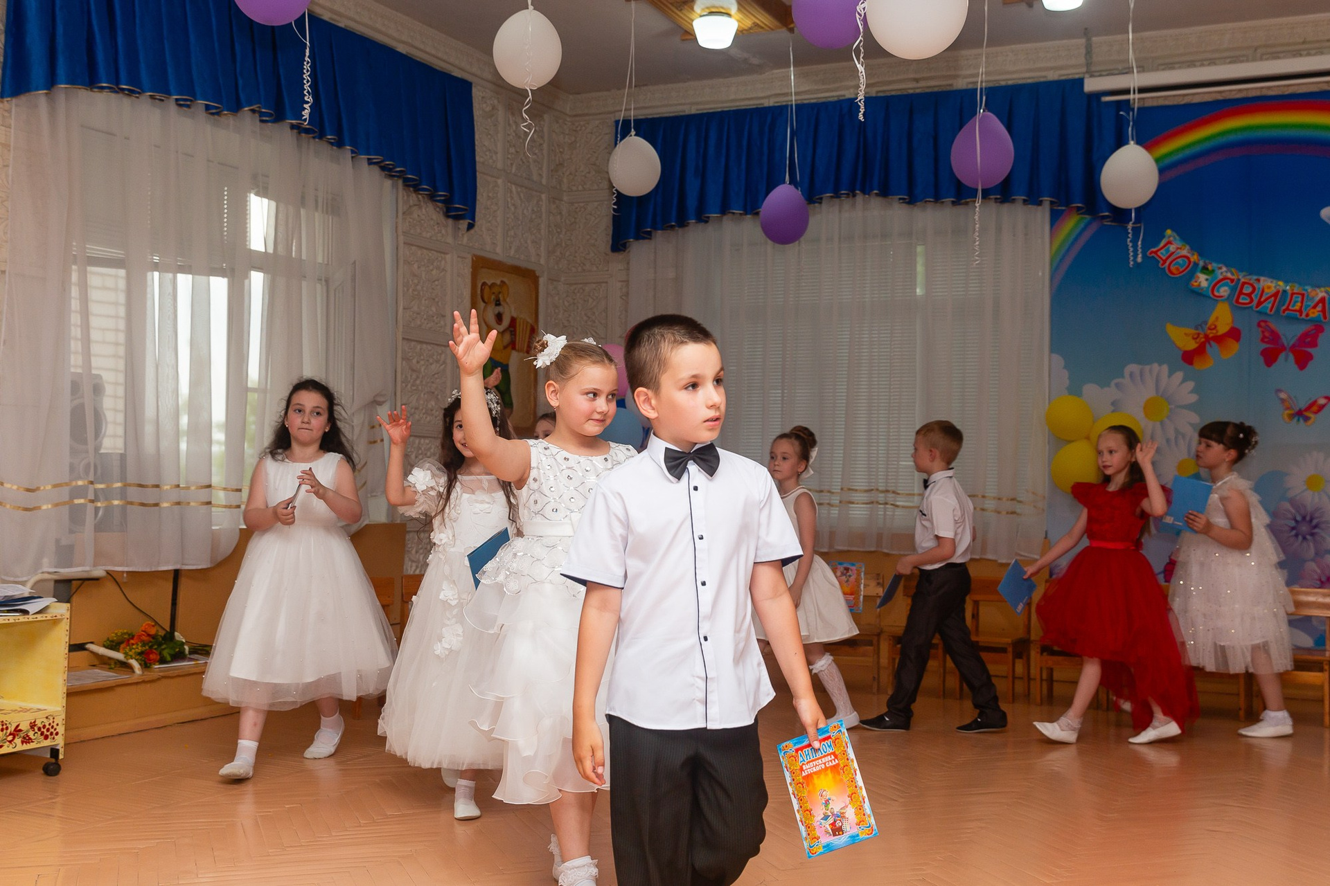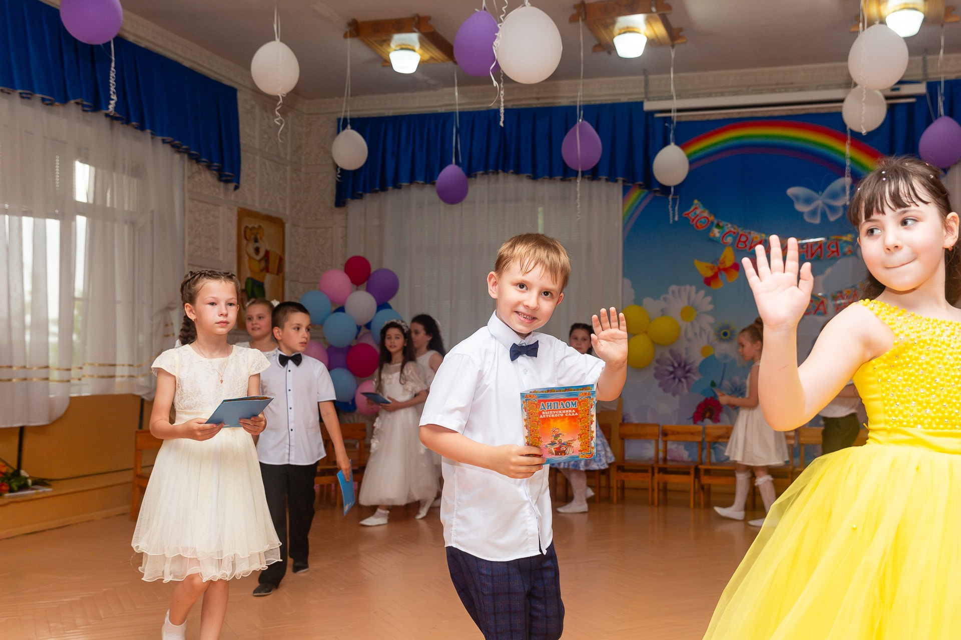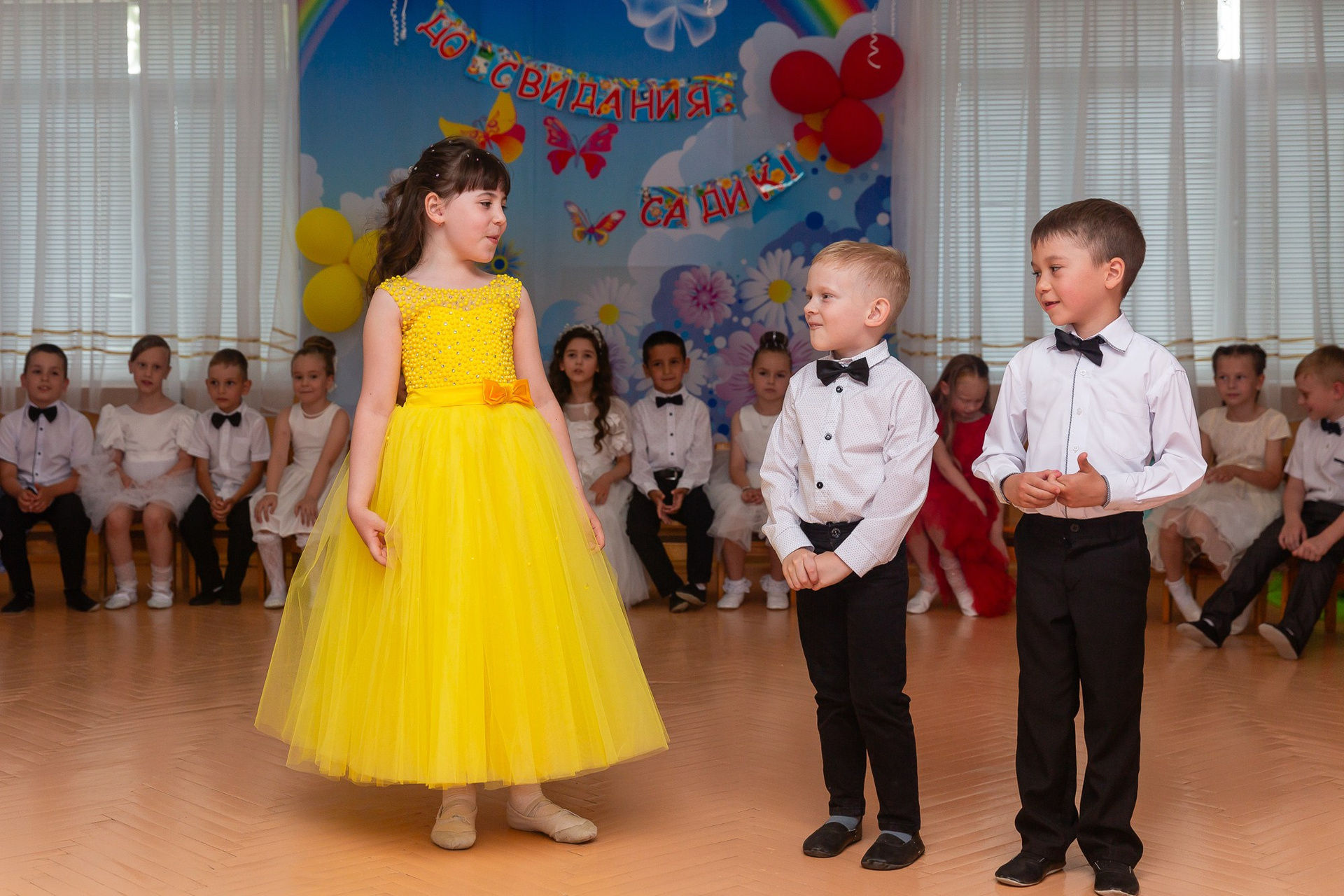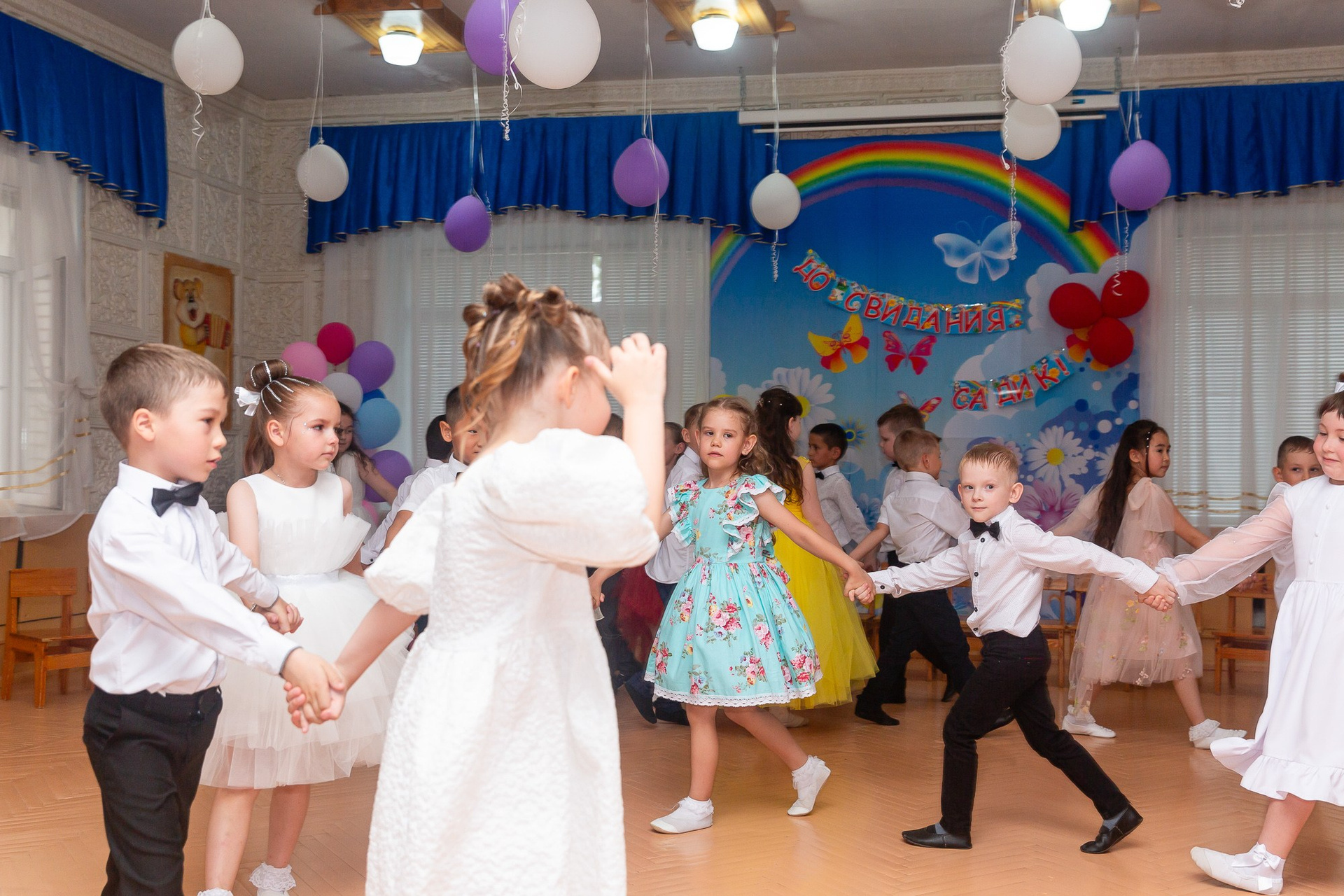 Съёмка выпускного в детсаду обычно занимает 2-3 часа и включает в себя: