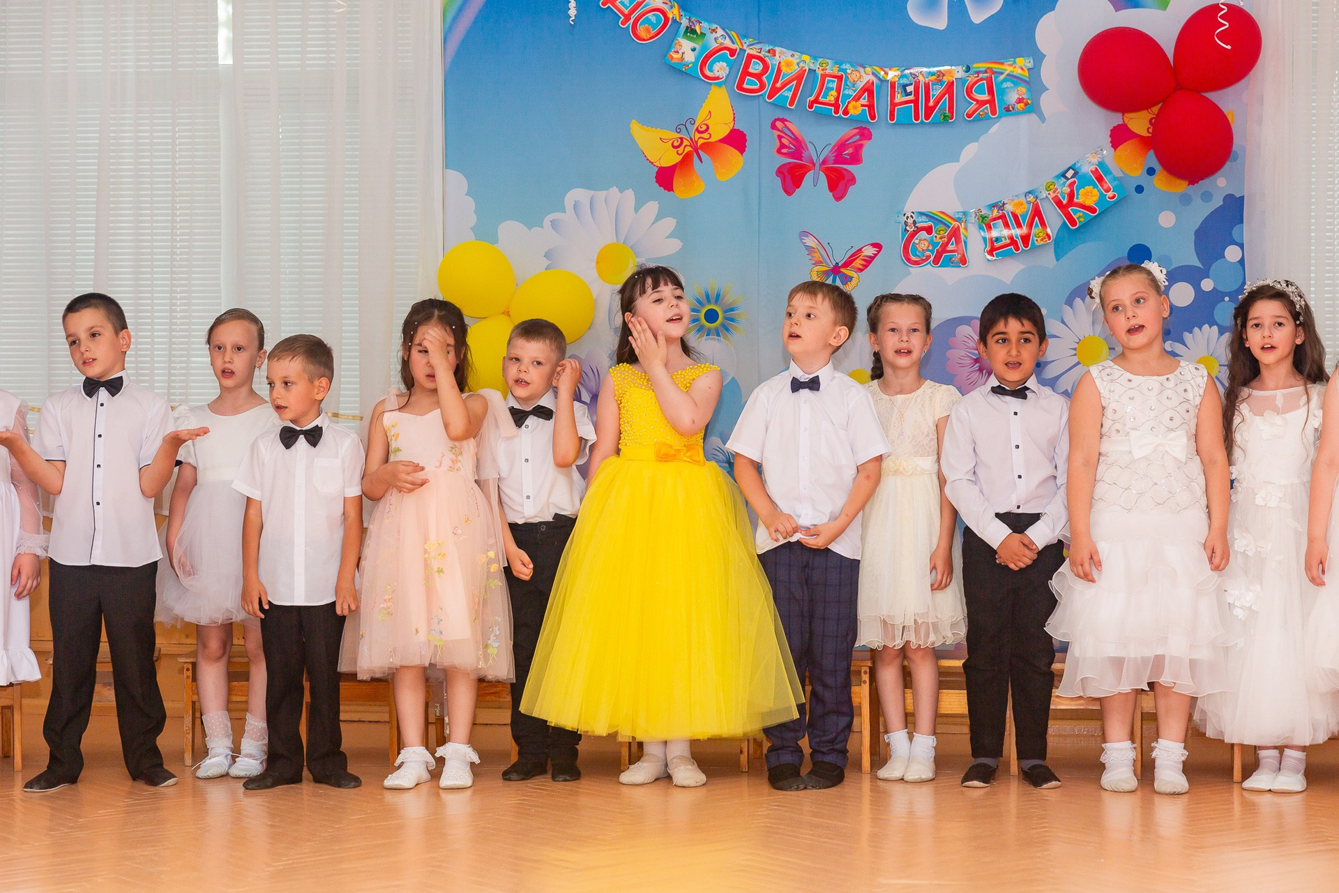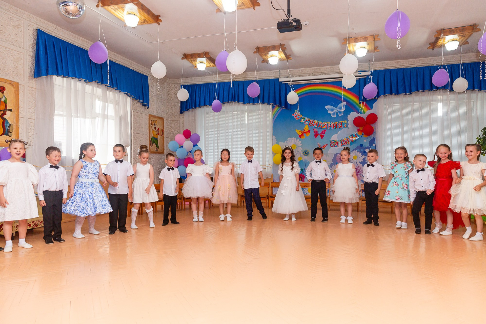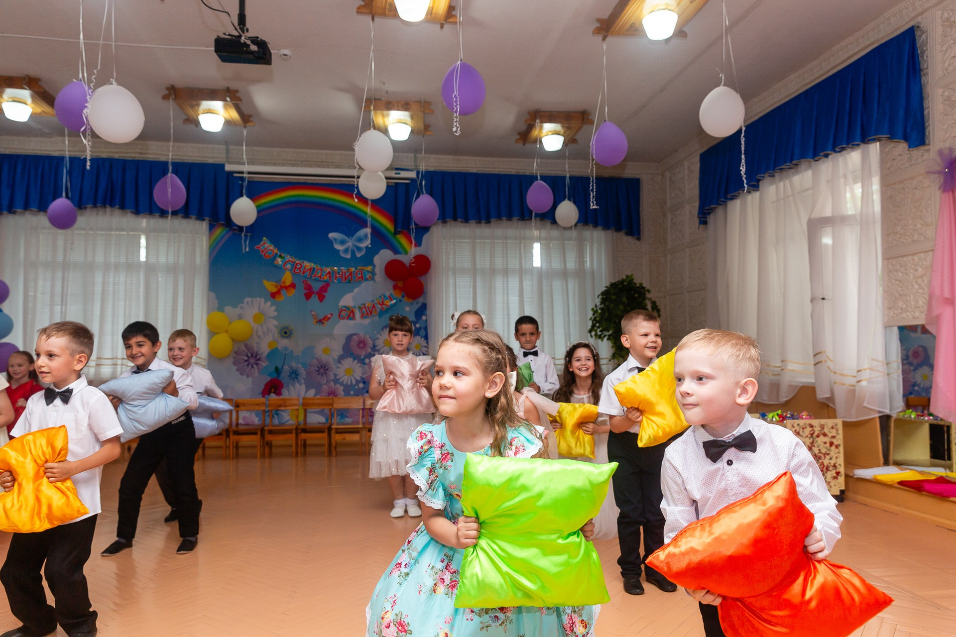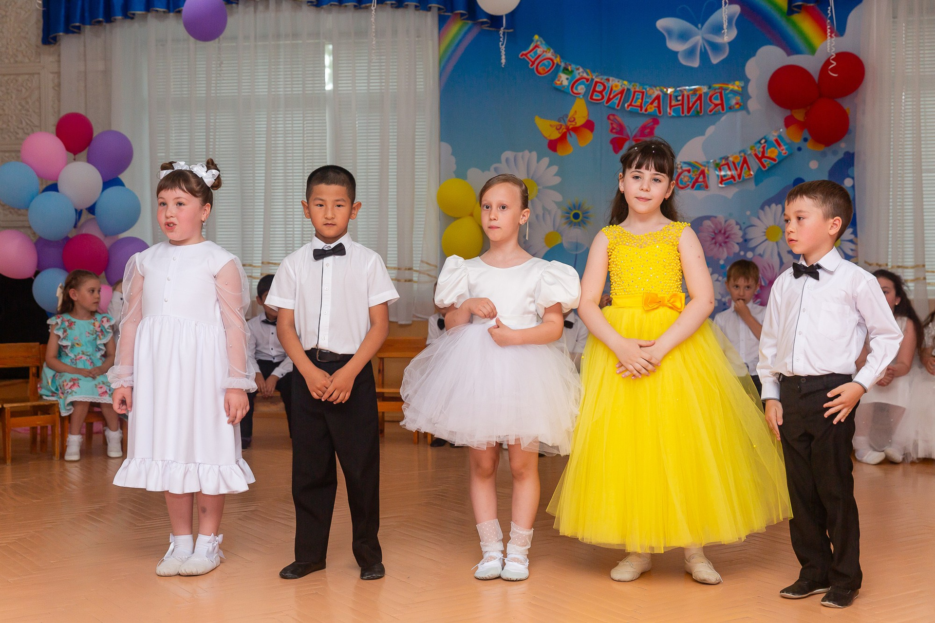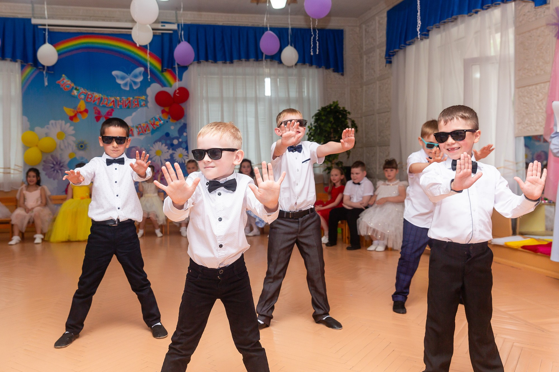 Съёмка выпускного в детсаду обычно занимает 2-3 часа и включает в себя: