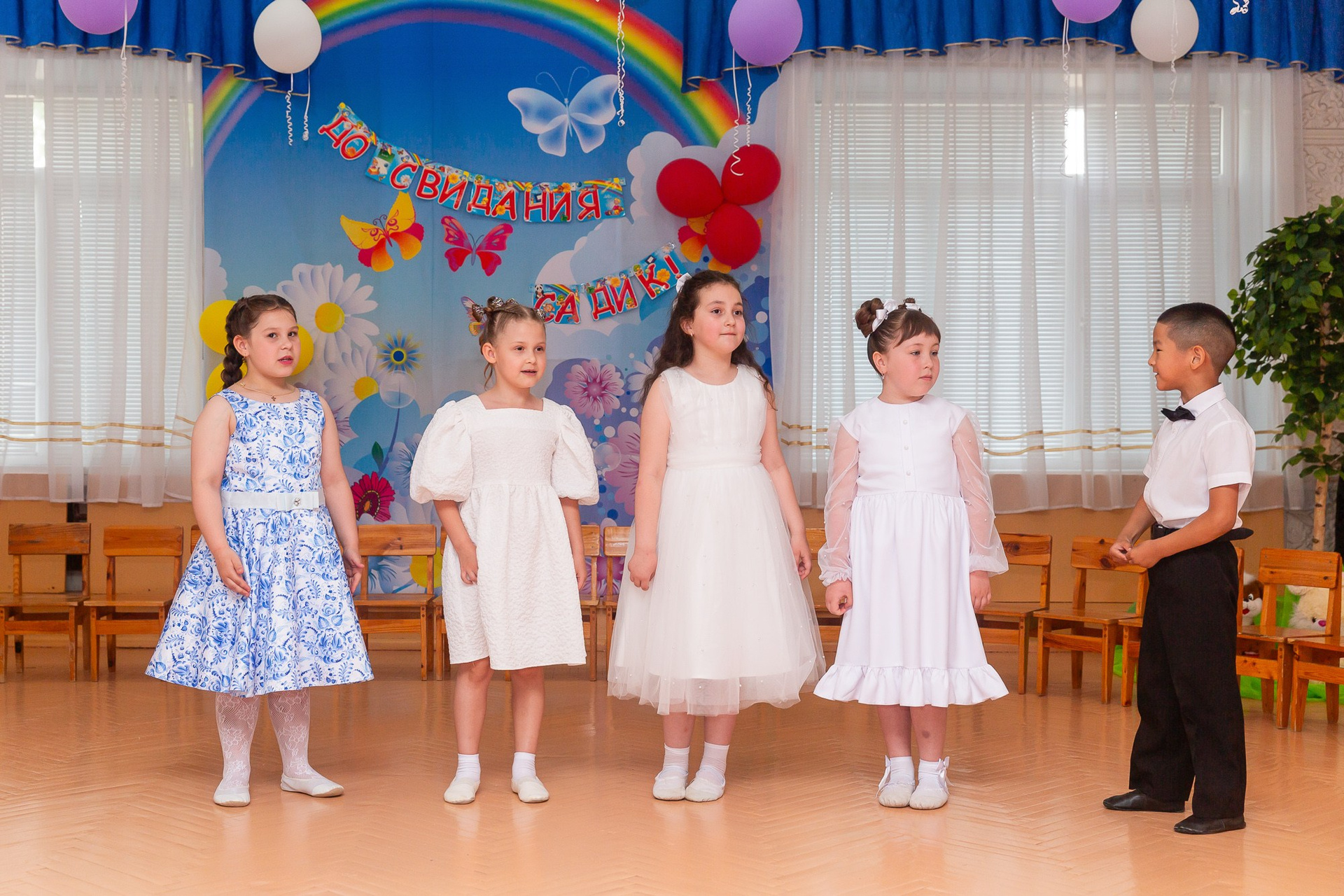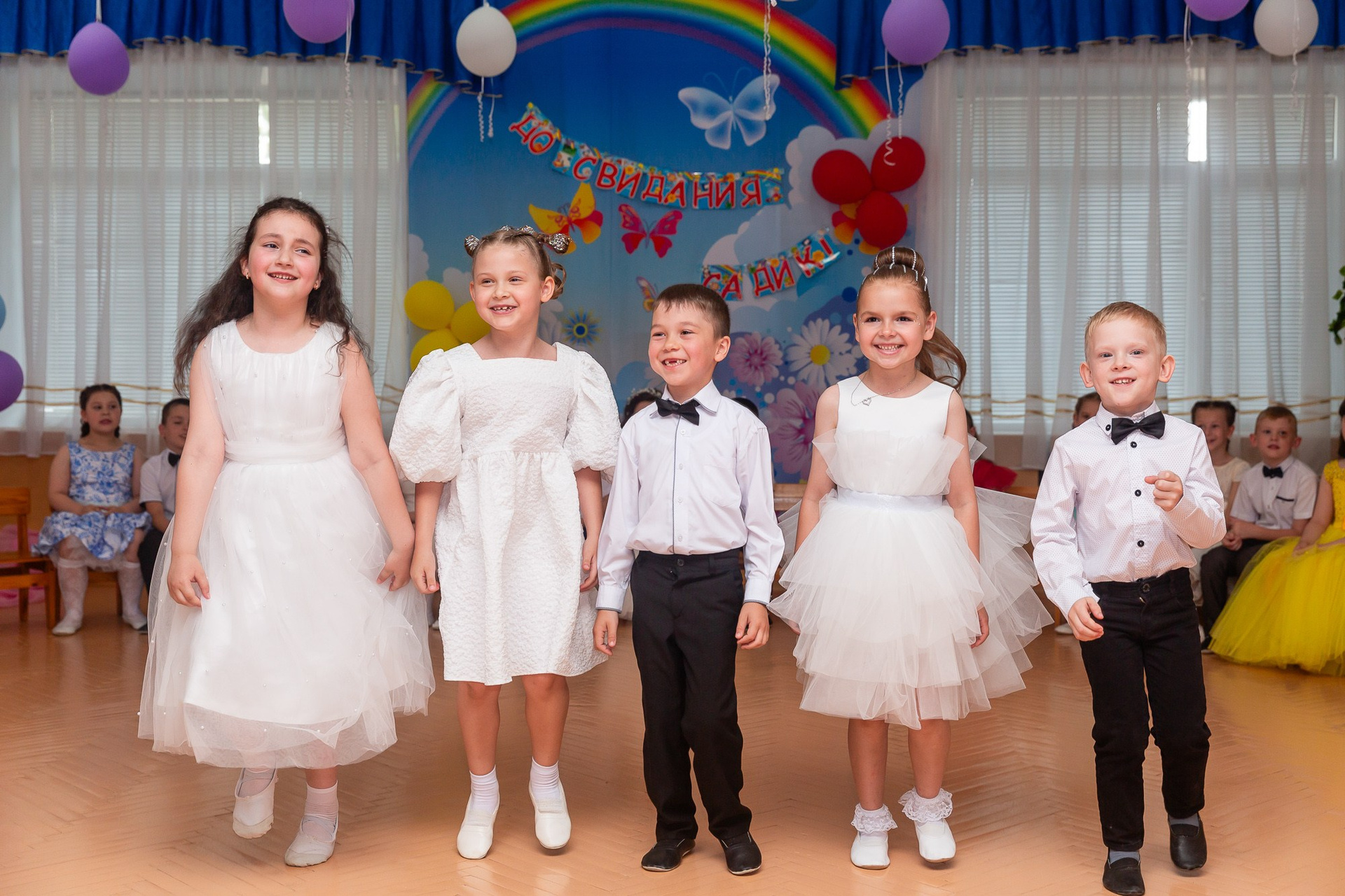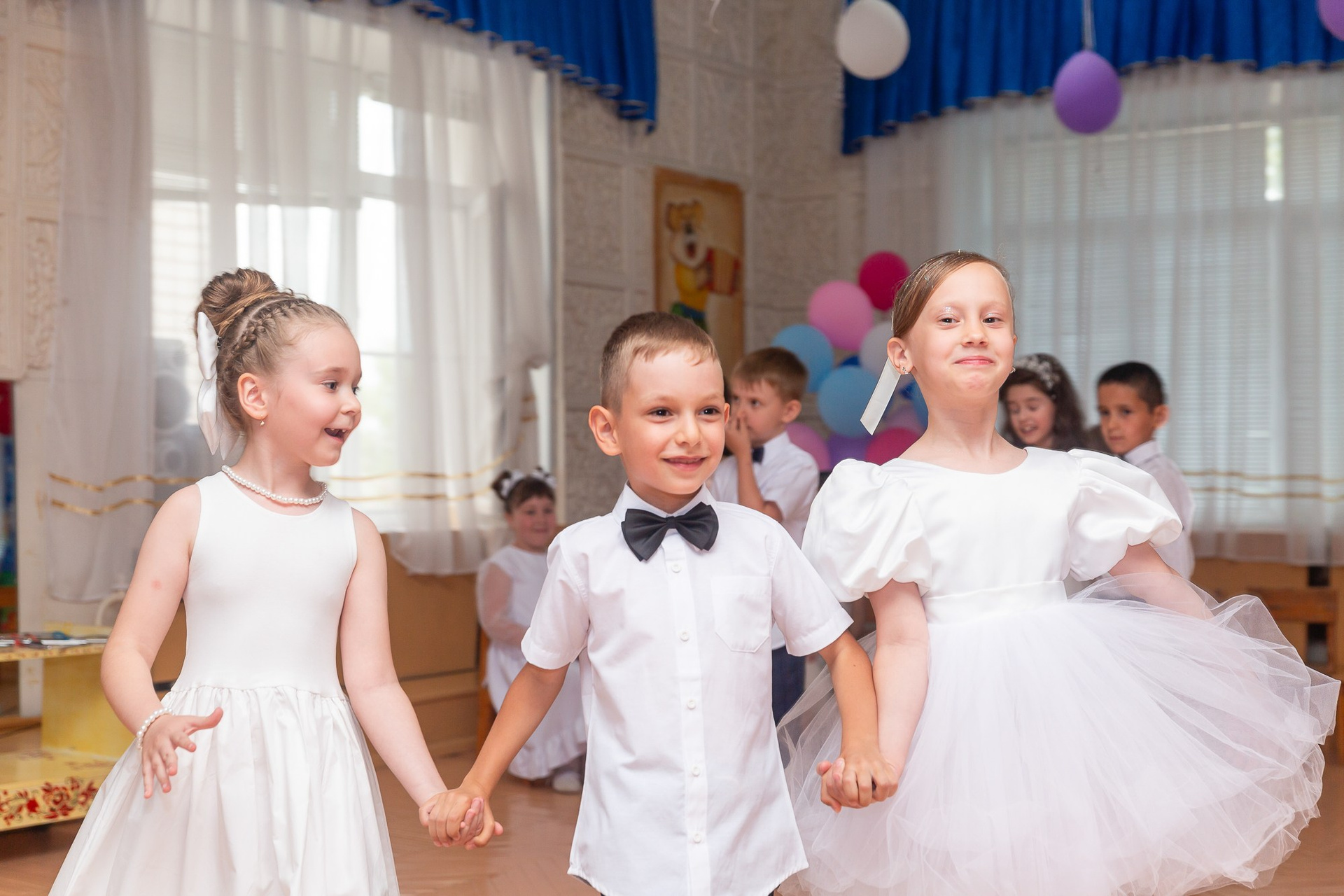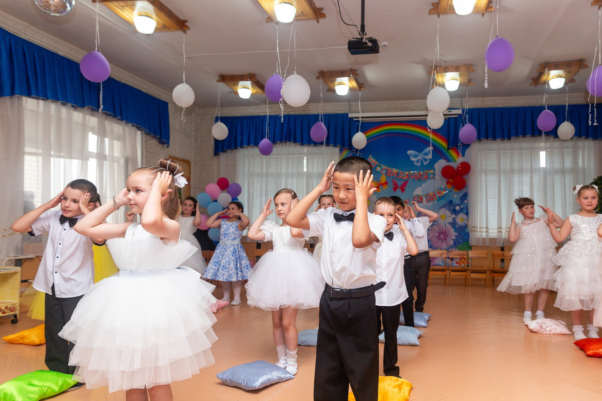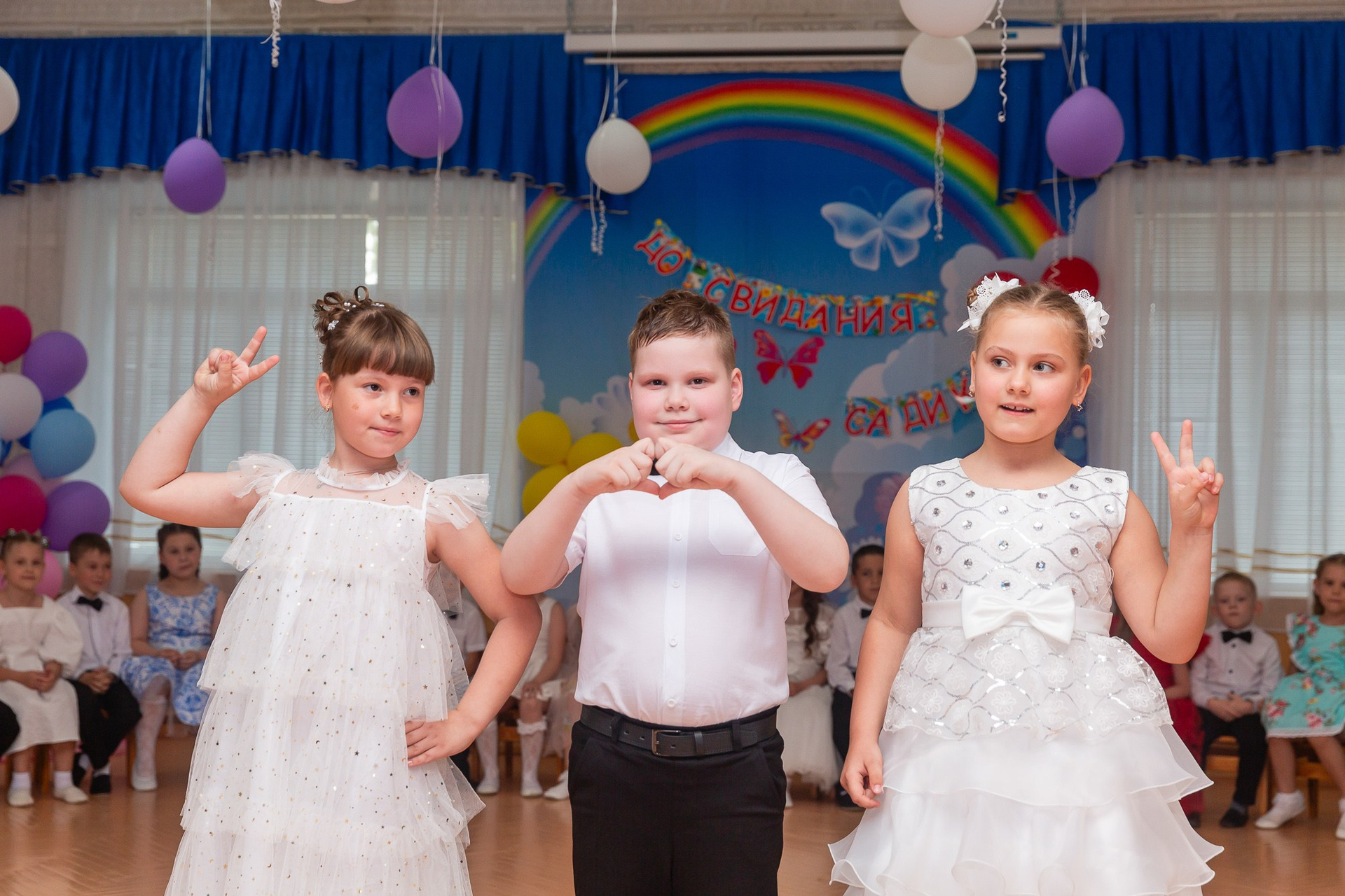 Съёмка выпускного в детсаду обычно занимает 2-3 часа и включает в себя: