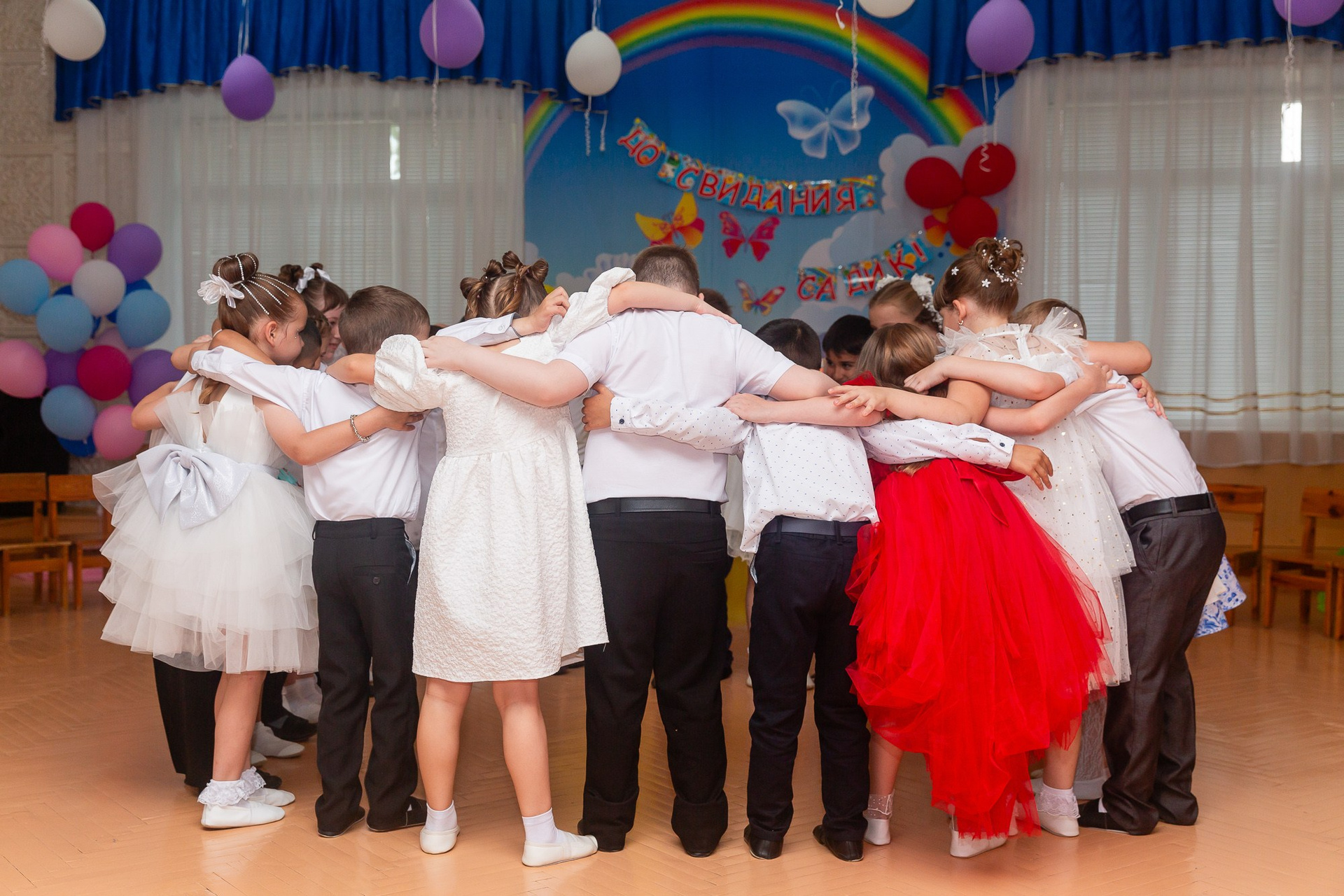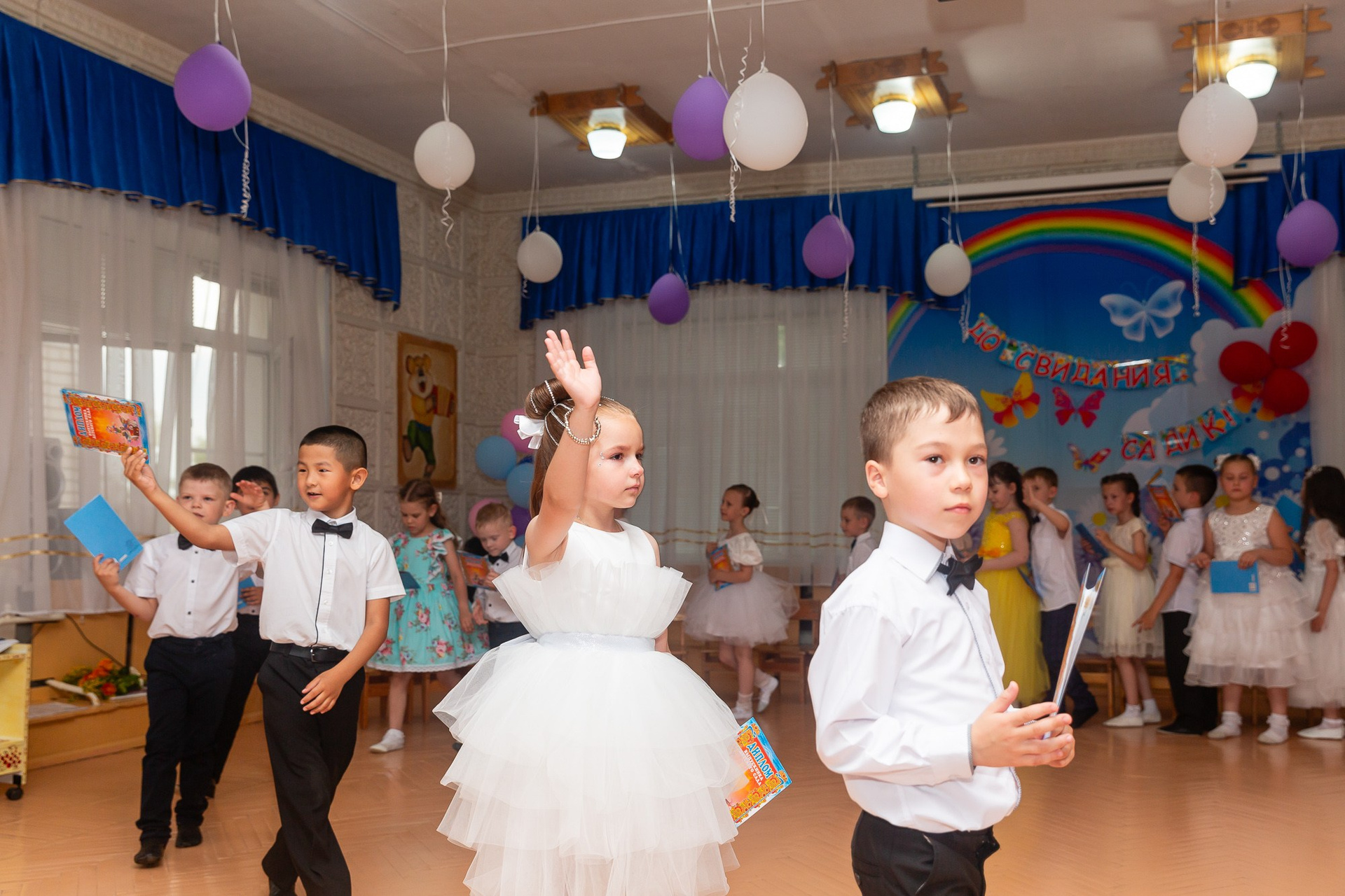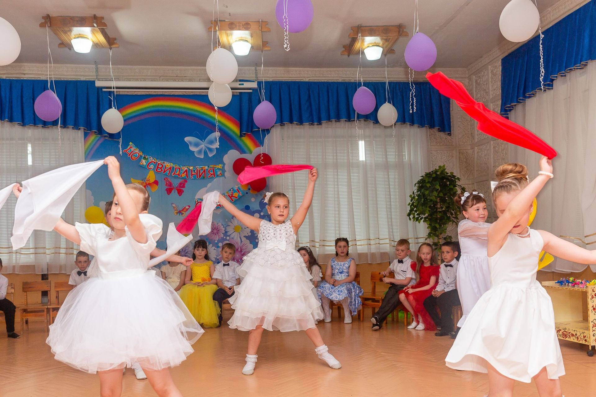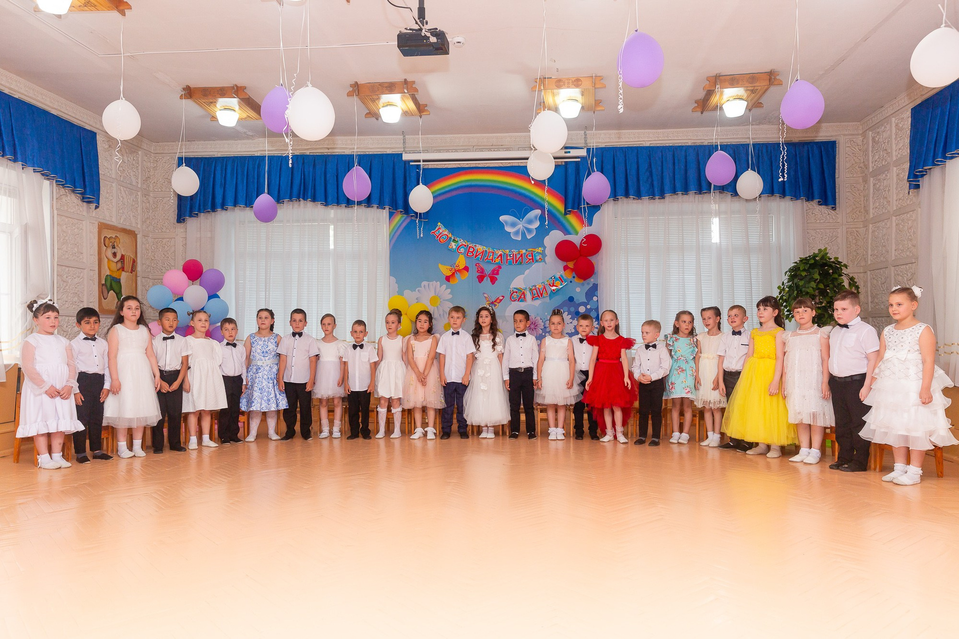 Съёмка выпускного в детсаду обычно занимает 2-3 часа и включает в себя: