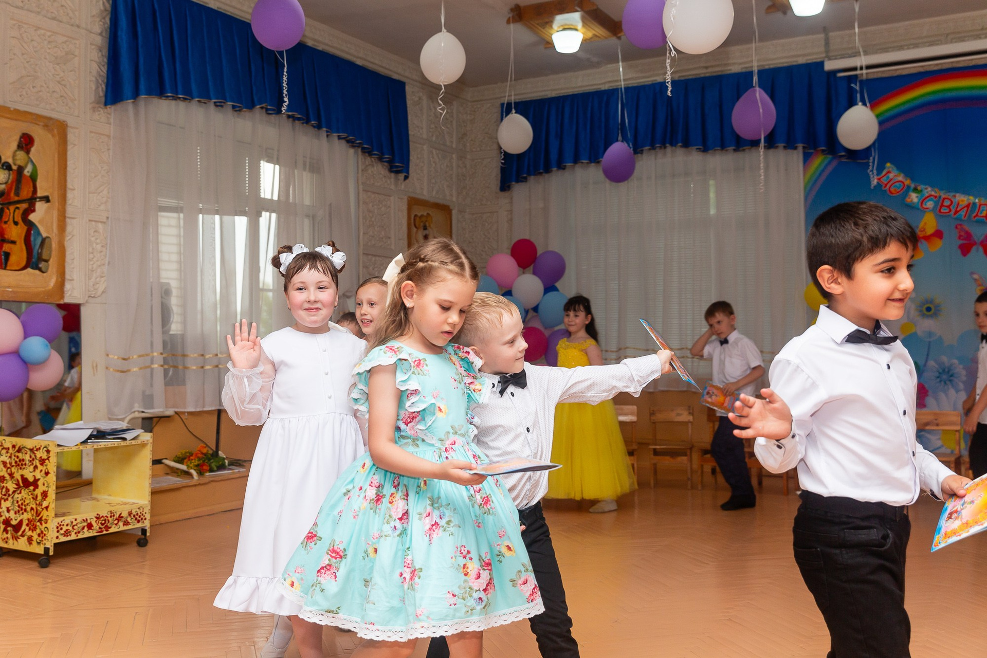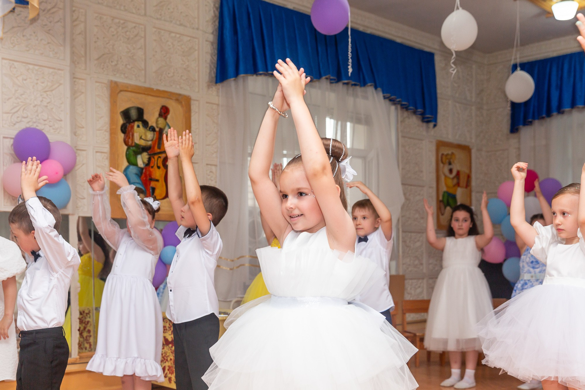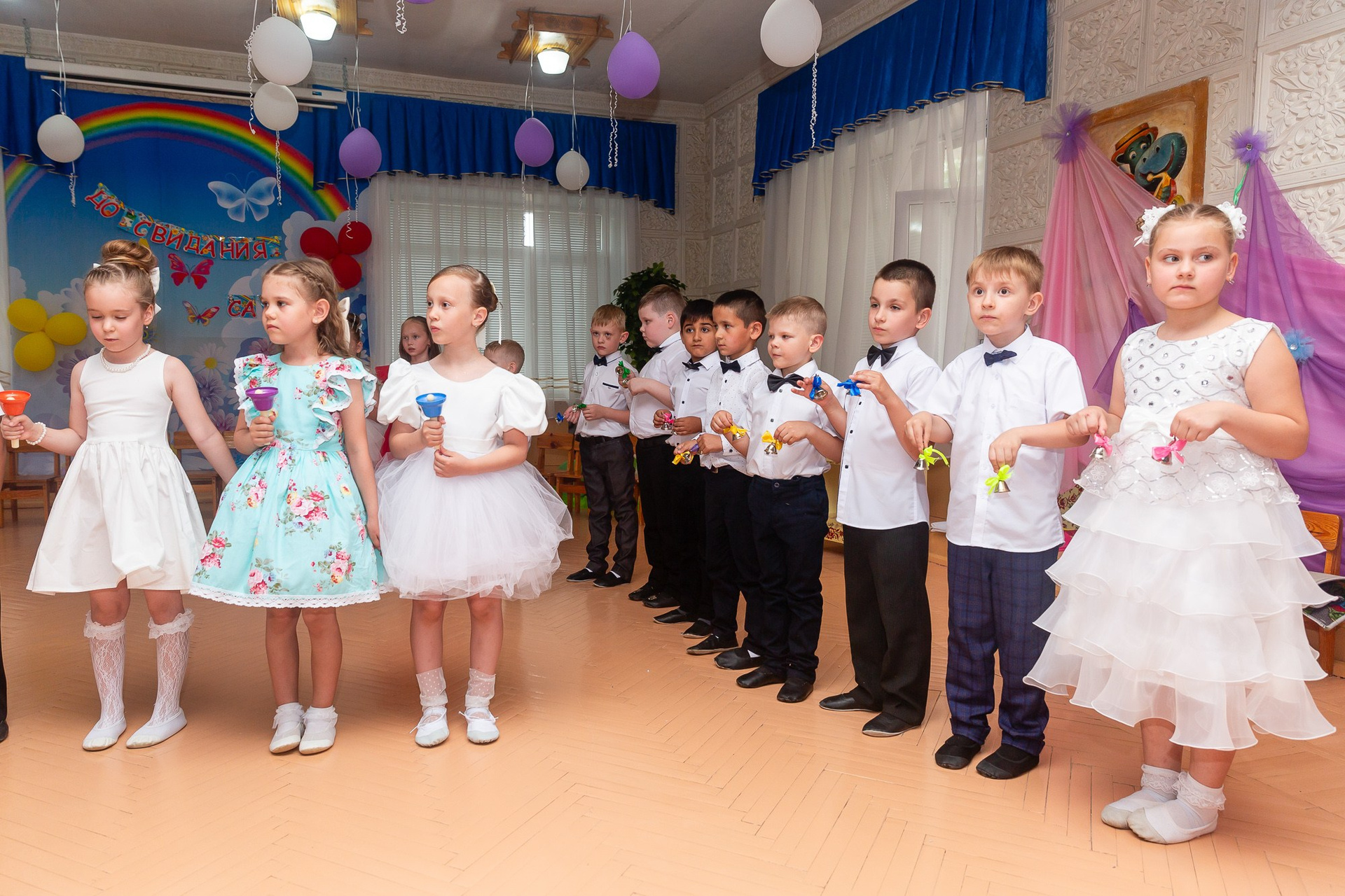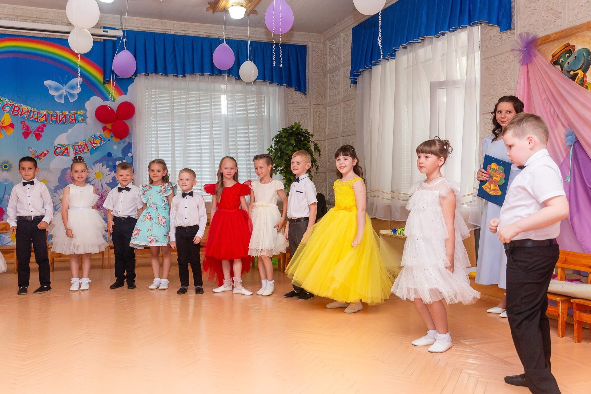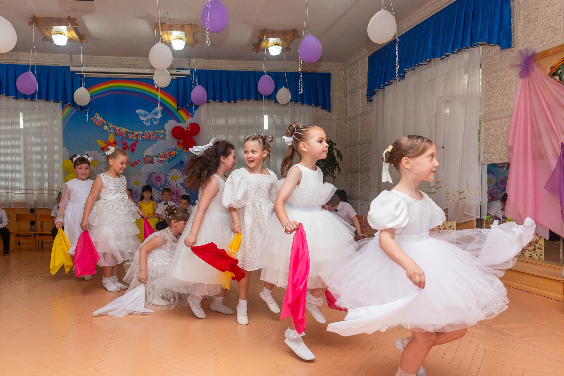 Съёмка выпускного в детсаду обычно занимает 2-3 часа и включает в себя: