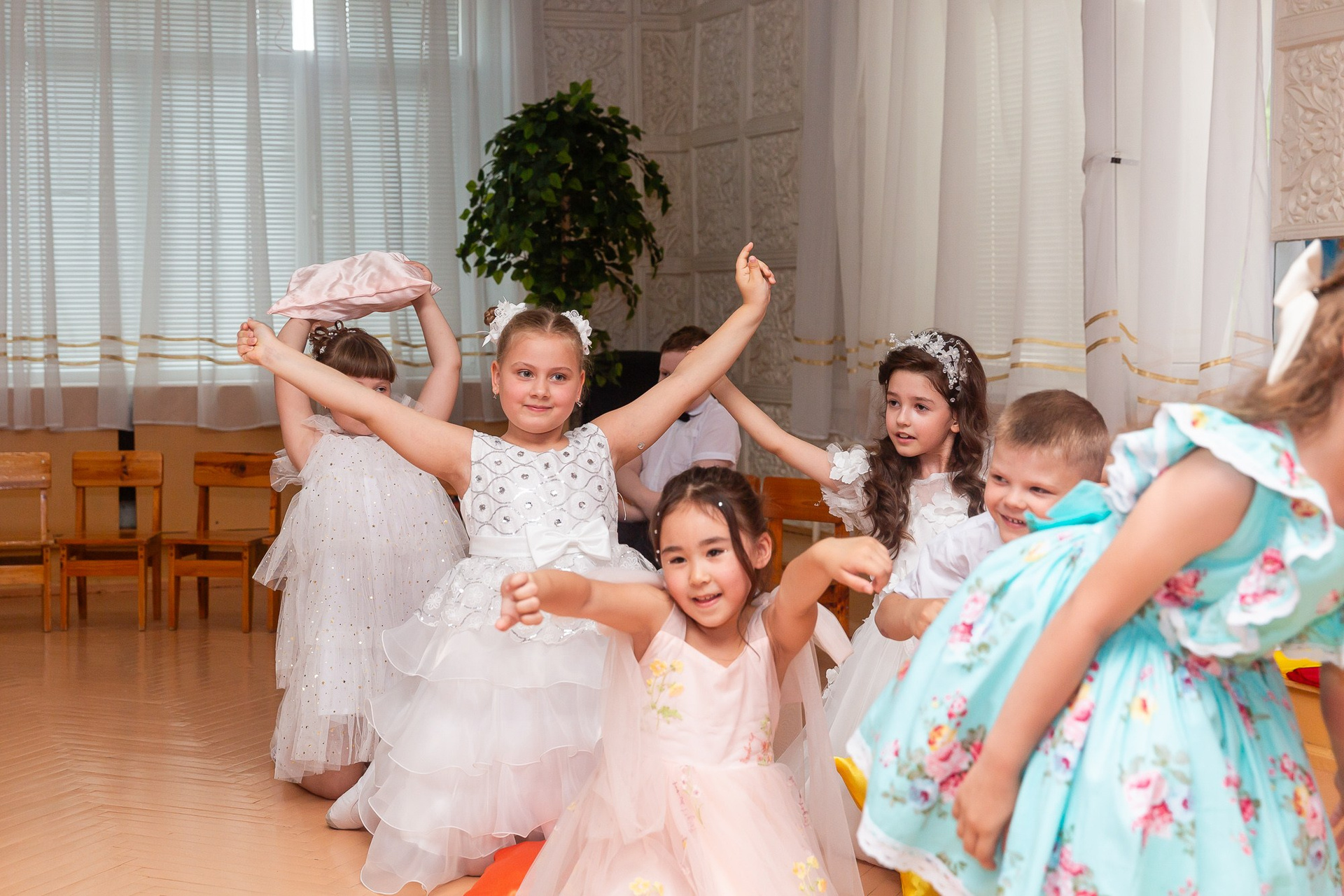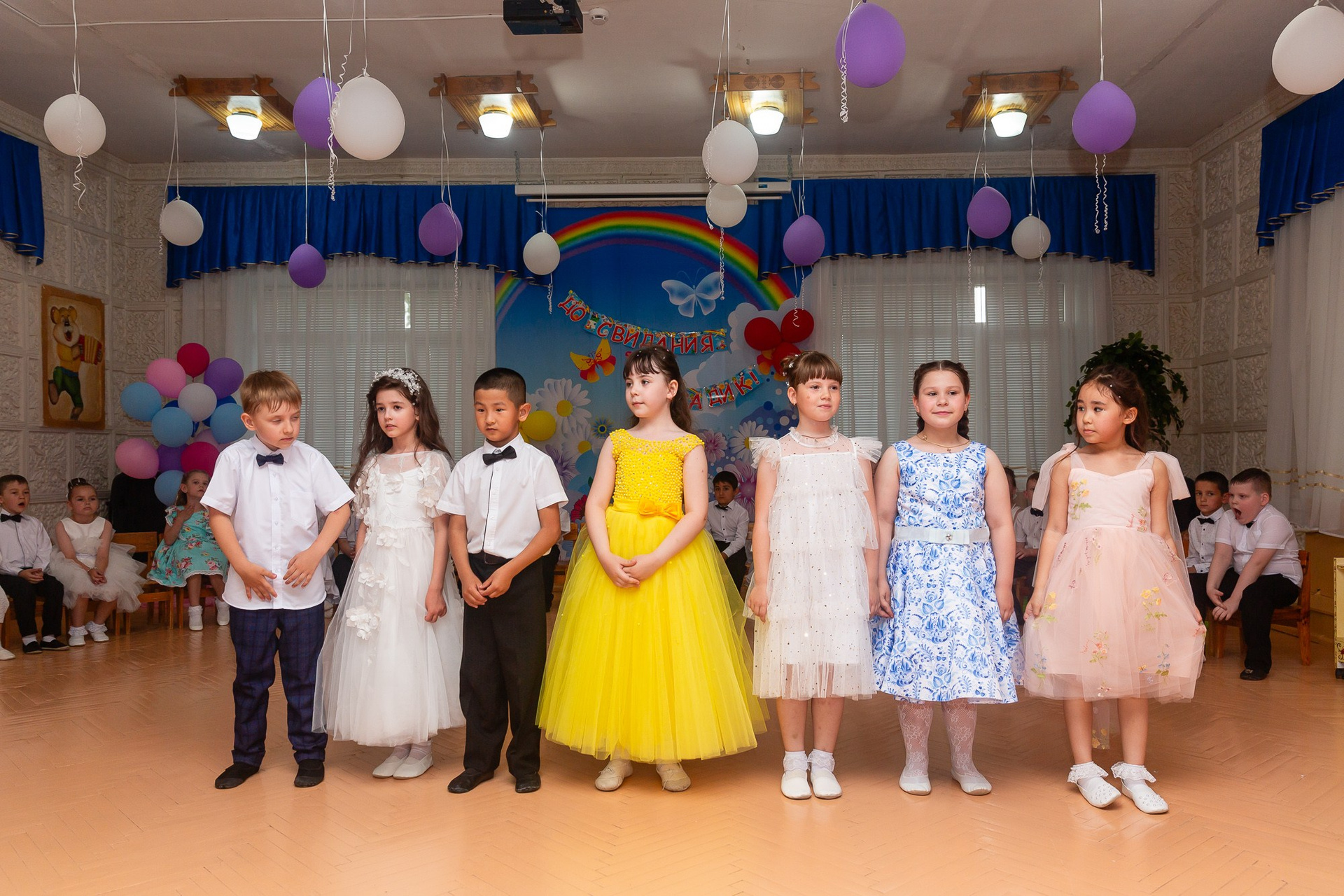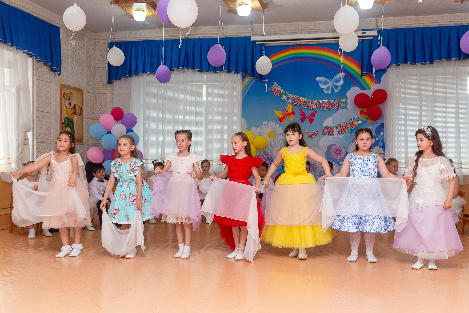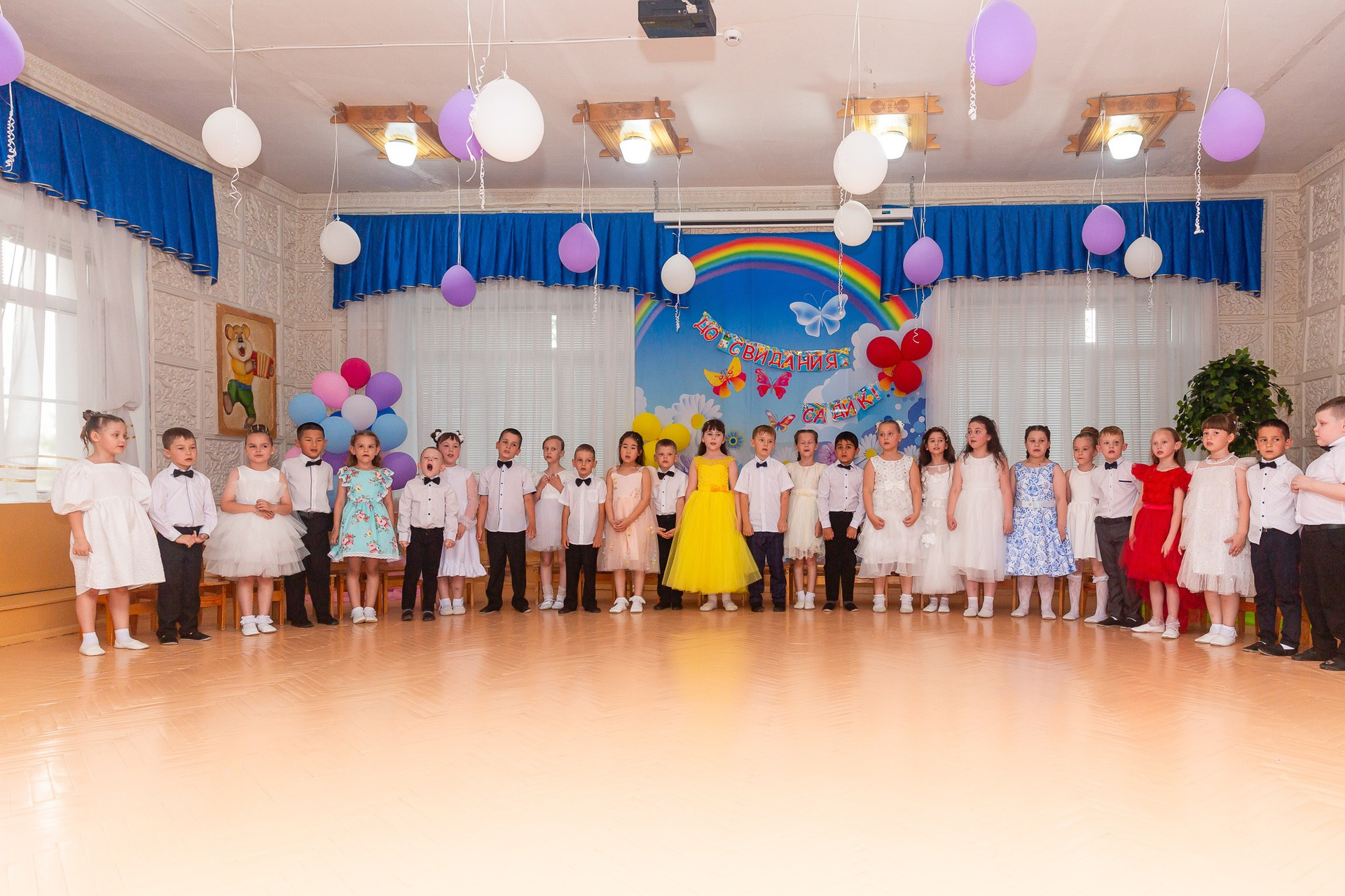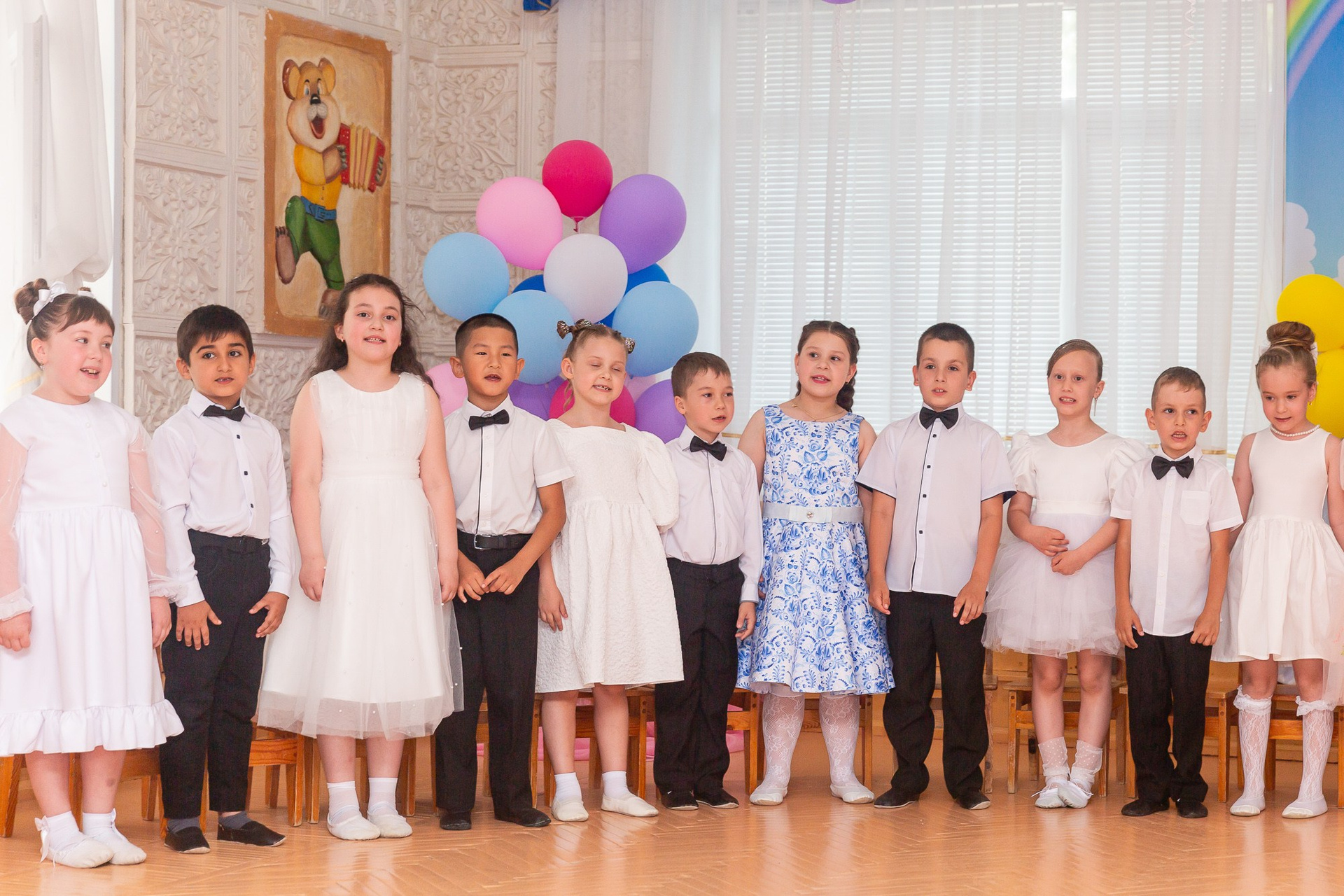 Съёмка выпускного в детсаду обычно занимает 2-3 часа и включает в себя: