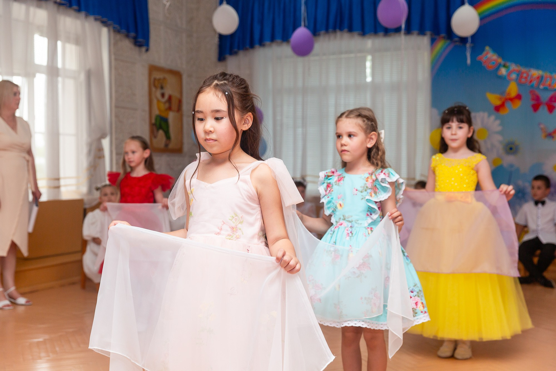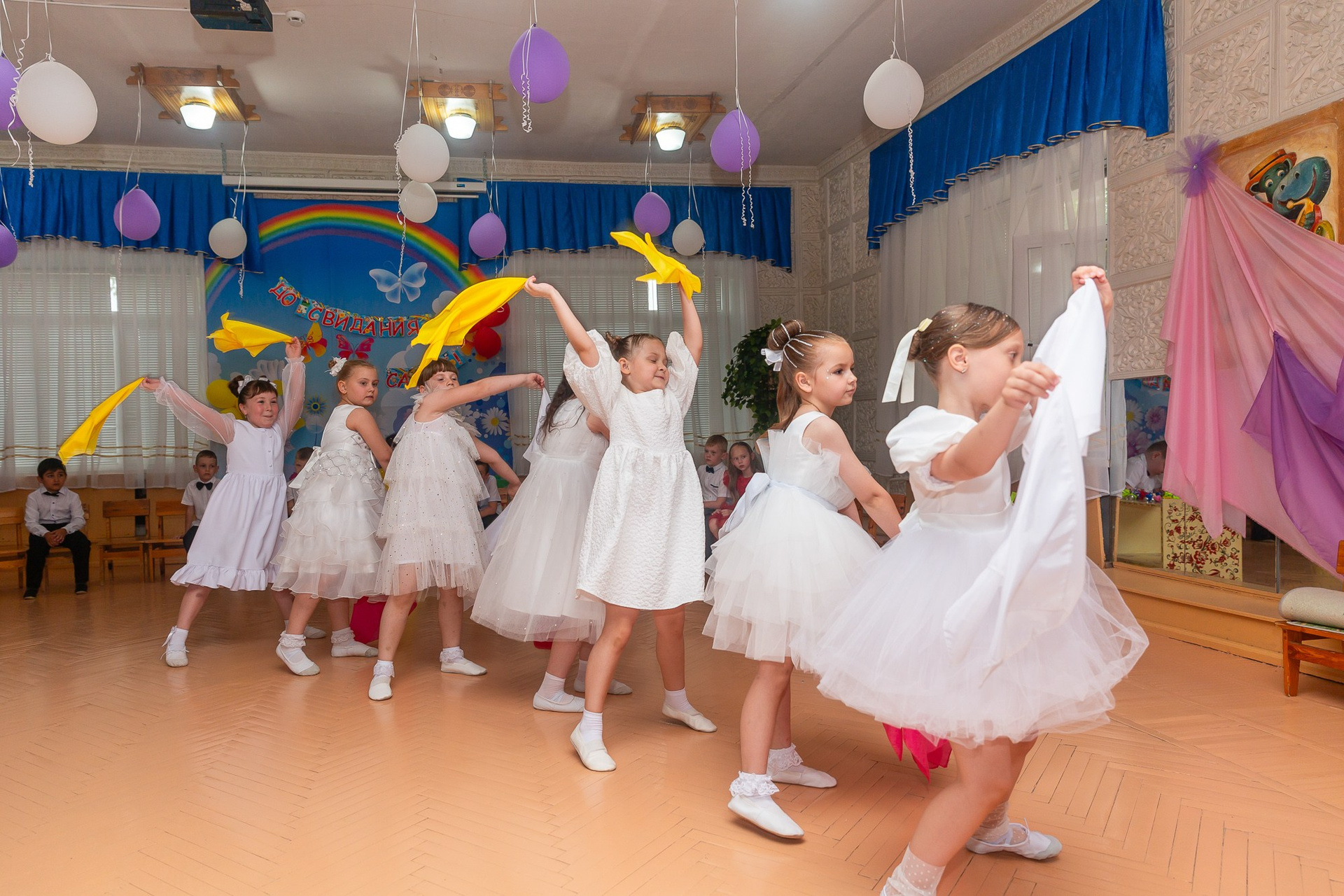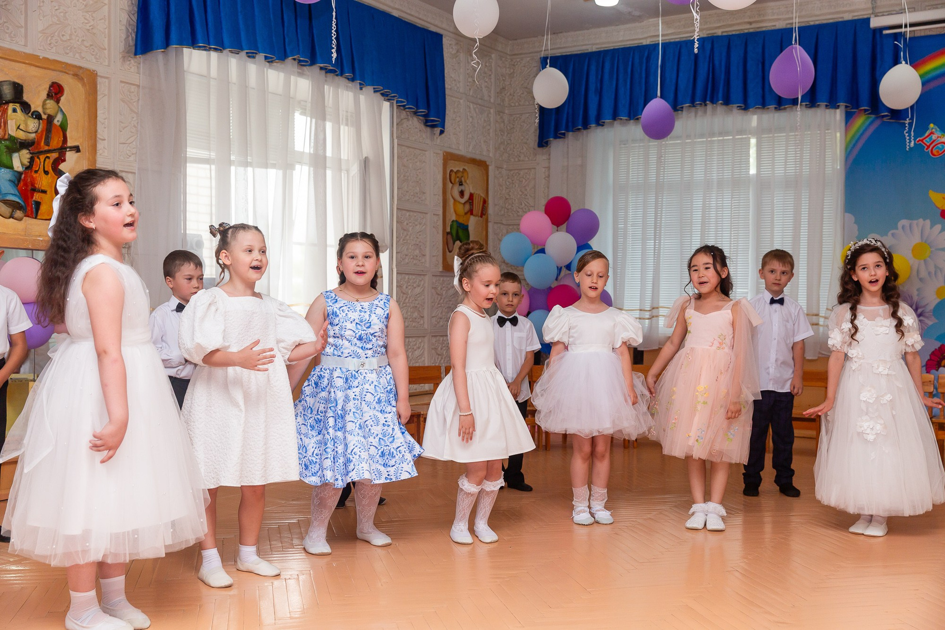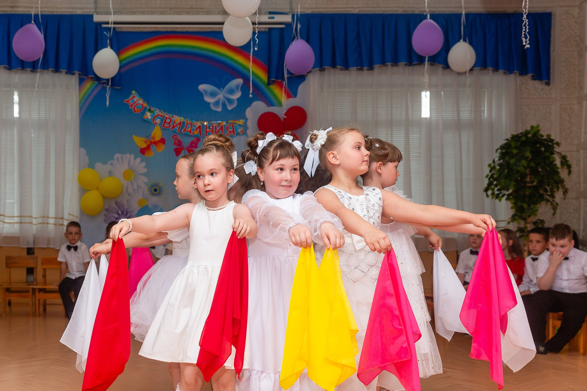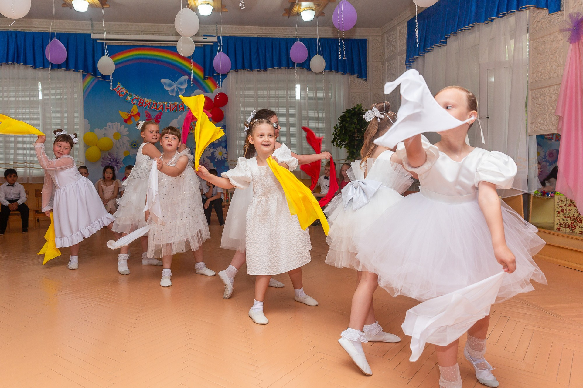 Съёмка выпускного в детсаду обычно занимает 2-3 часа и включает в себя: