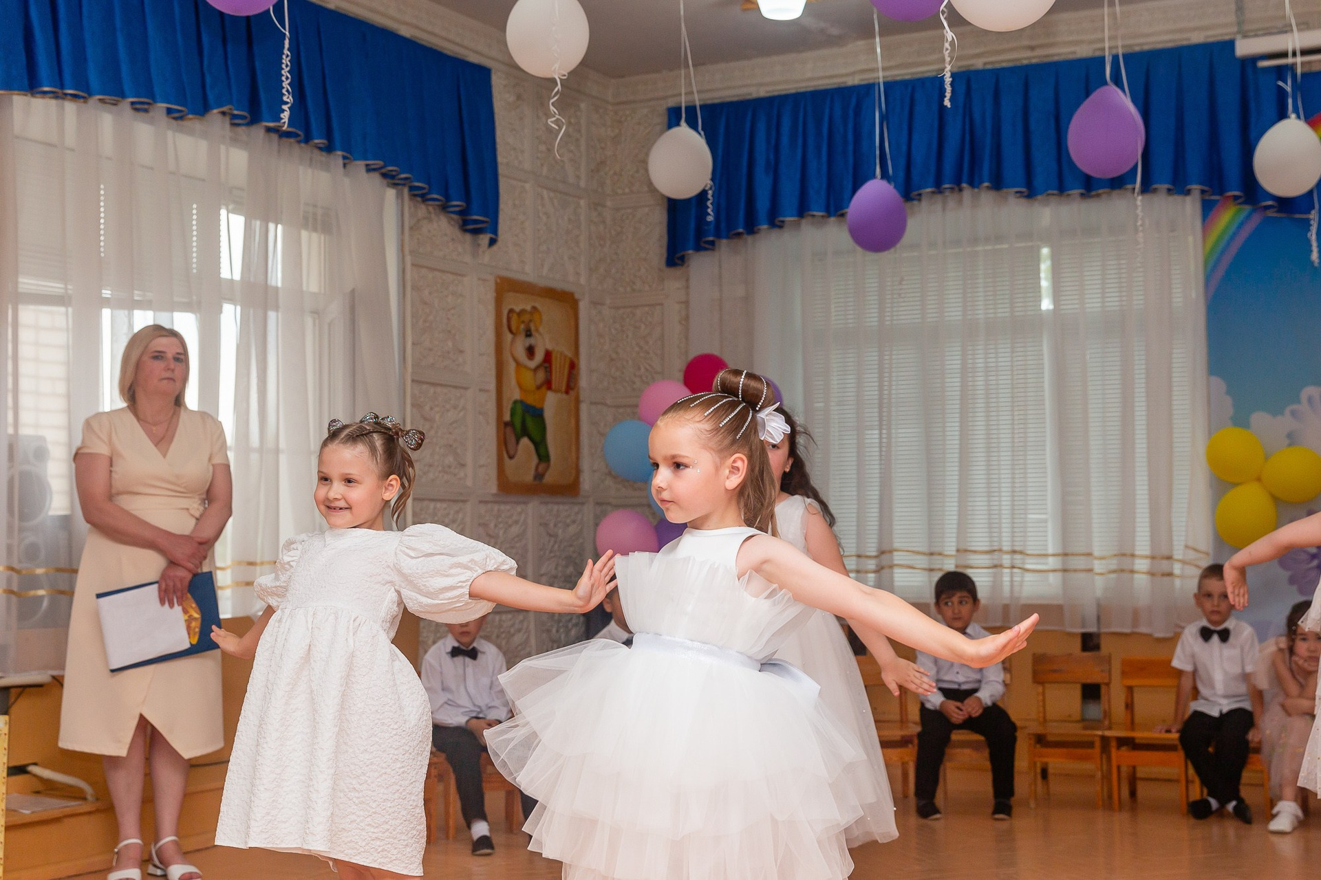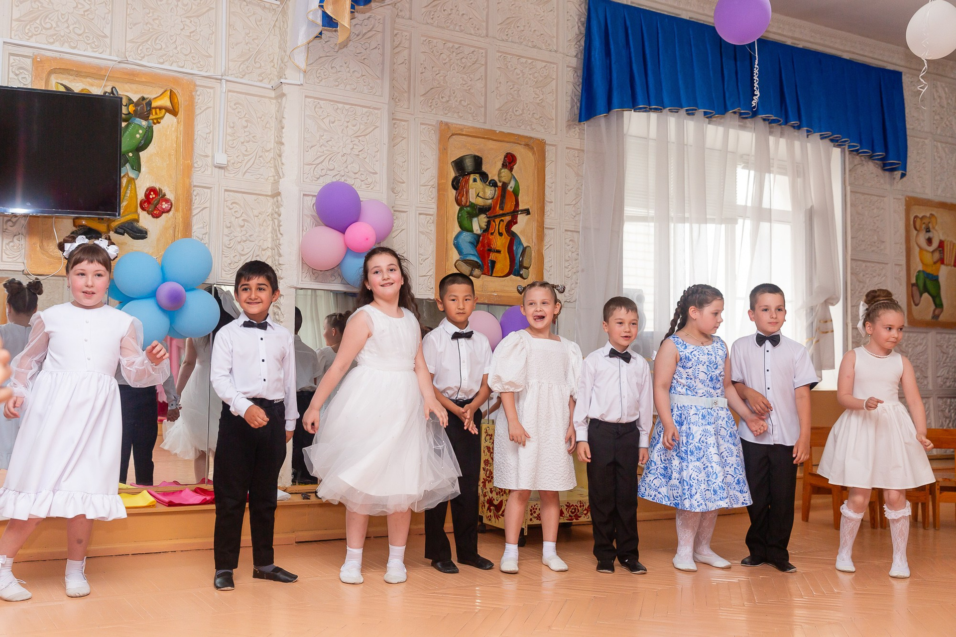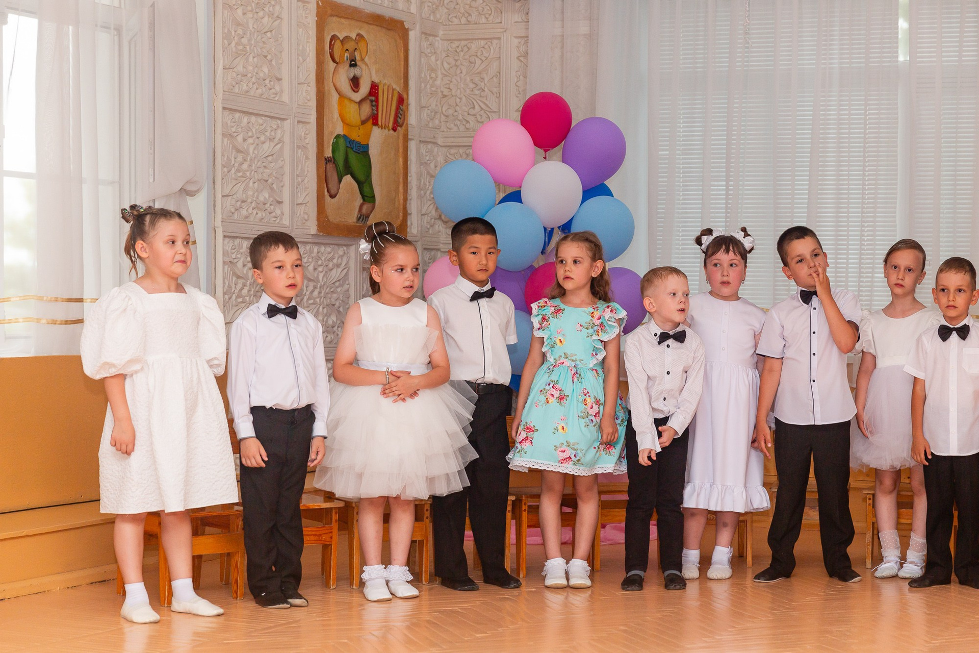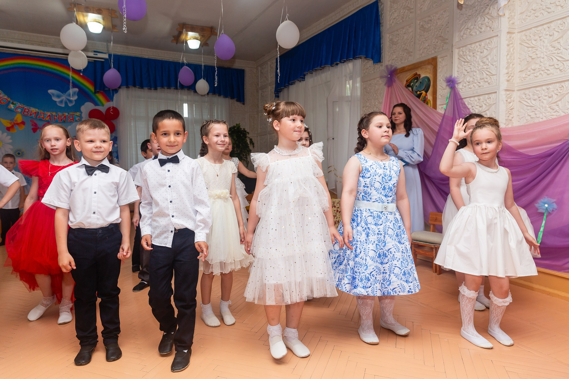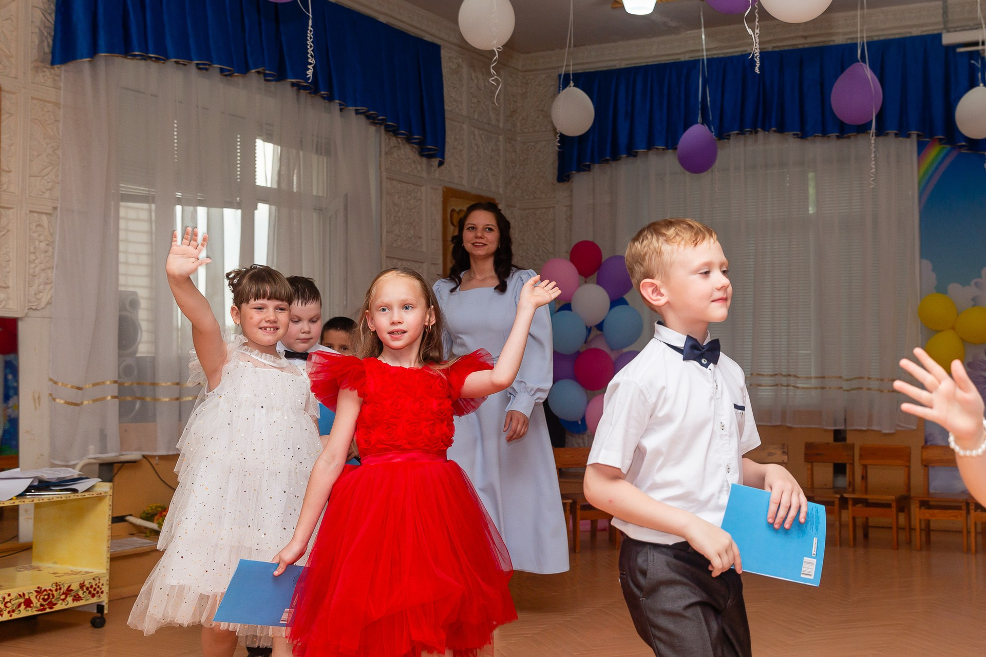 Съёмка выпускного в детсаду обычно занимает 2-3 часа и включает в себя: