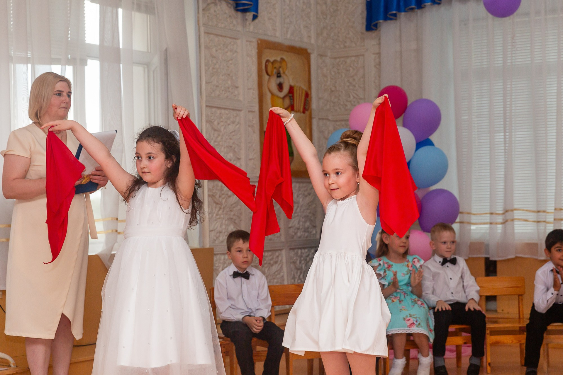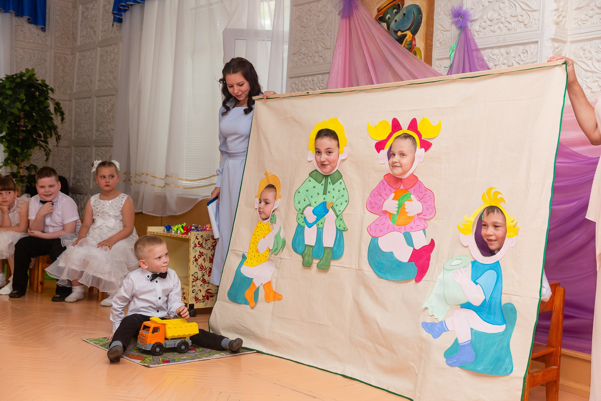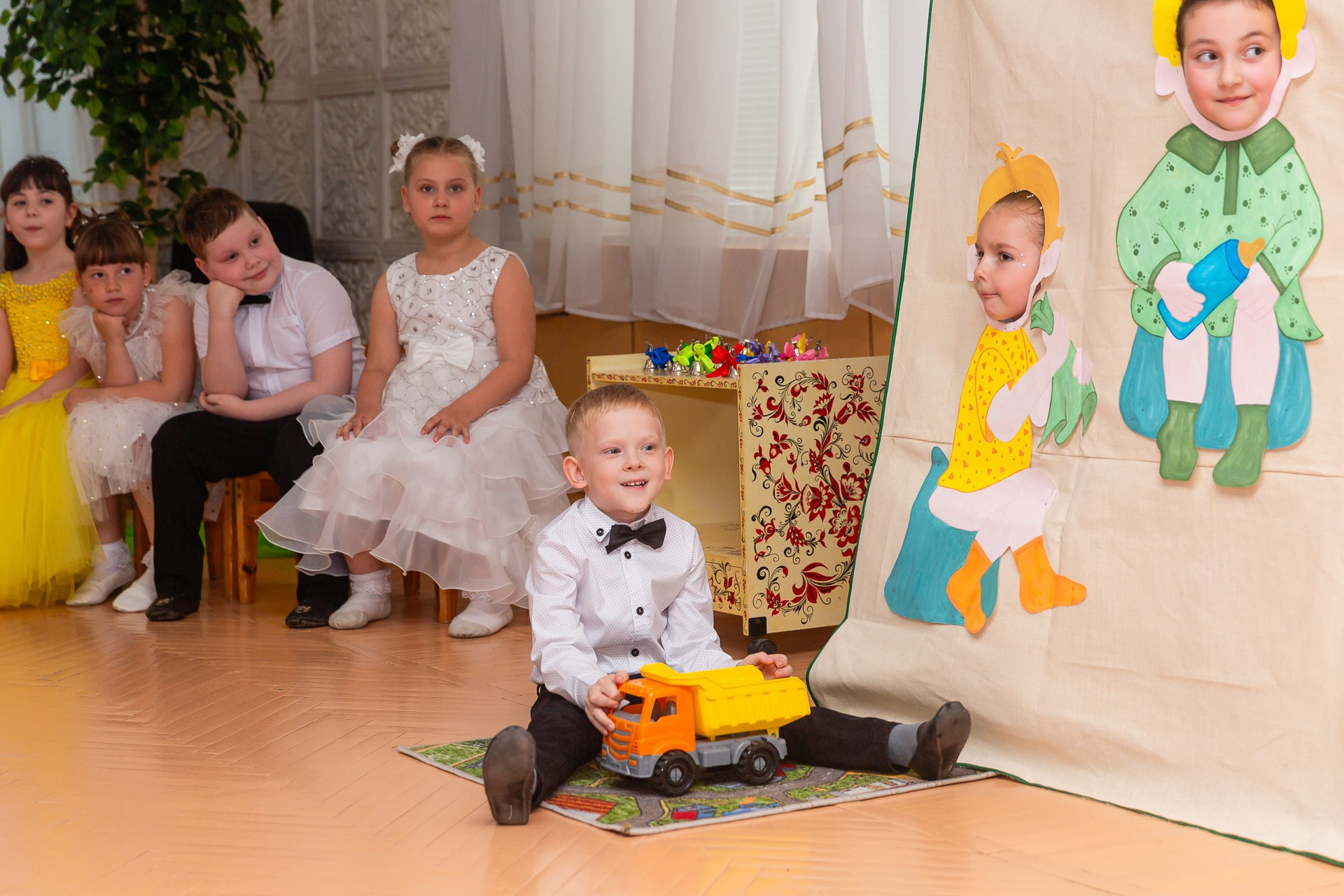 - иногда сюда же добавляются кадры в группе (друг с другом и воспитателями, минут 30 до начала утренника).