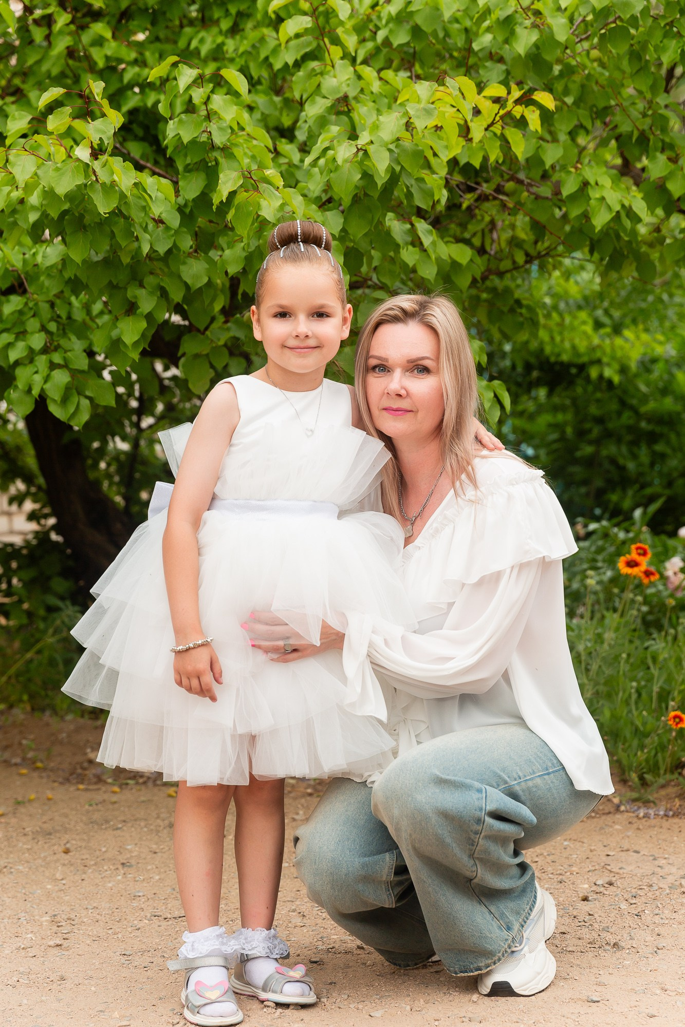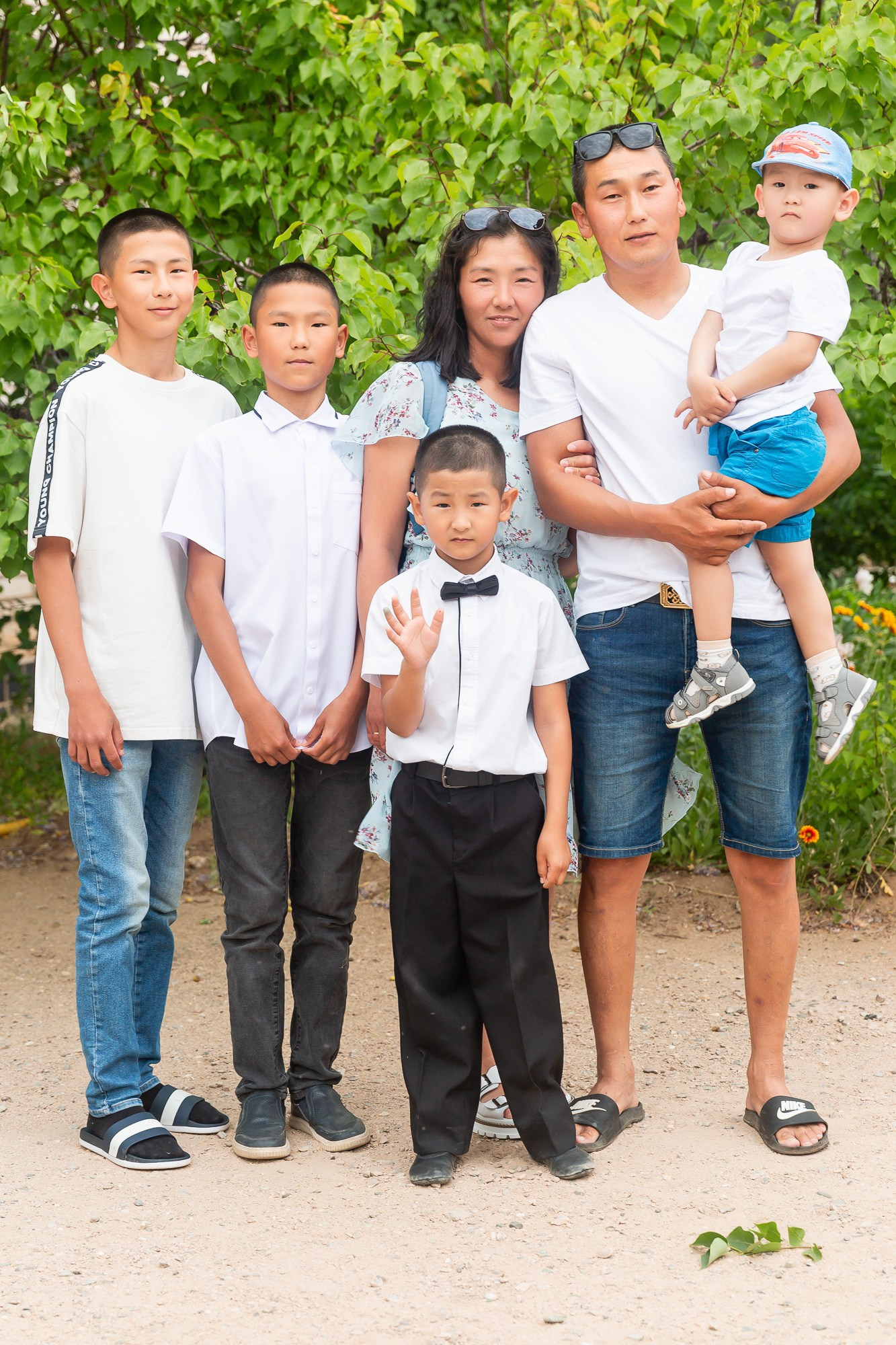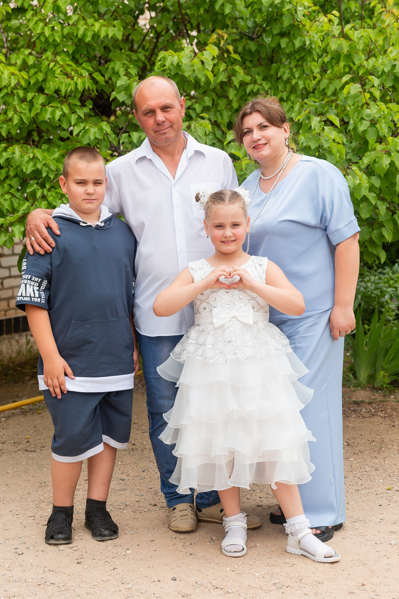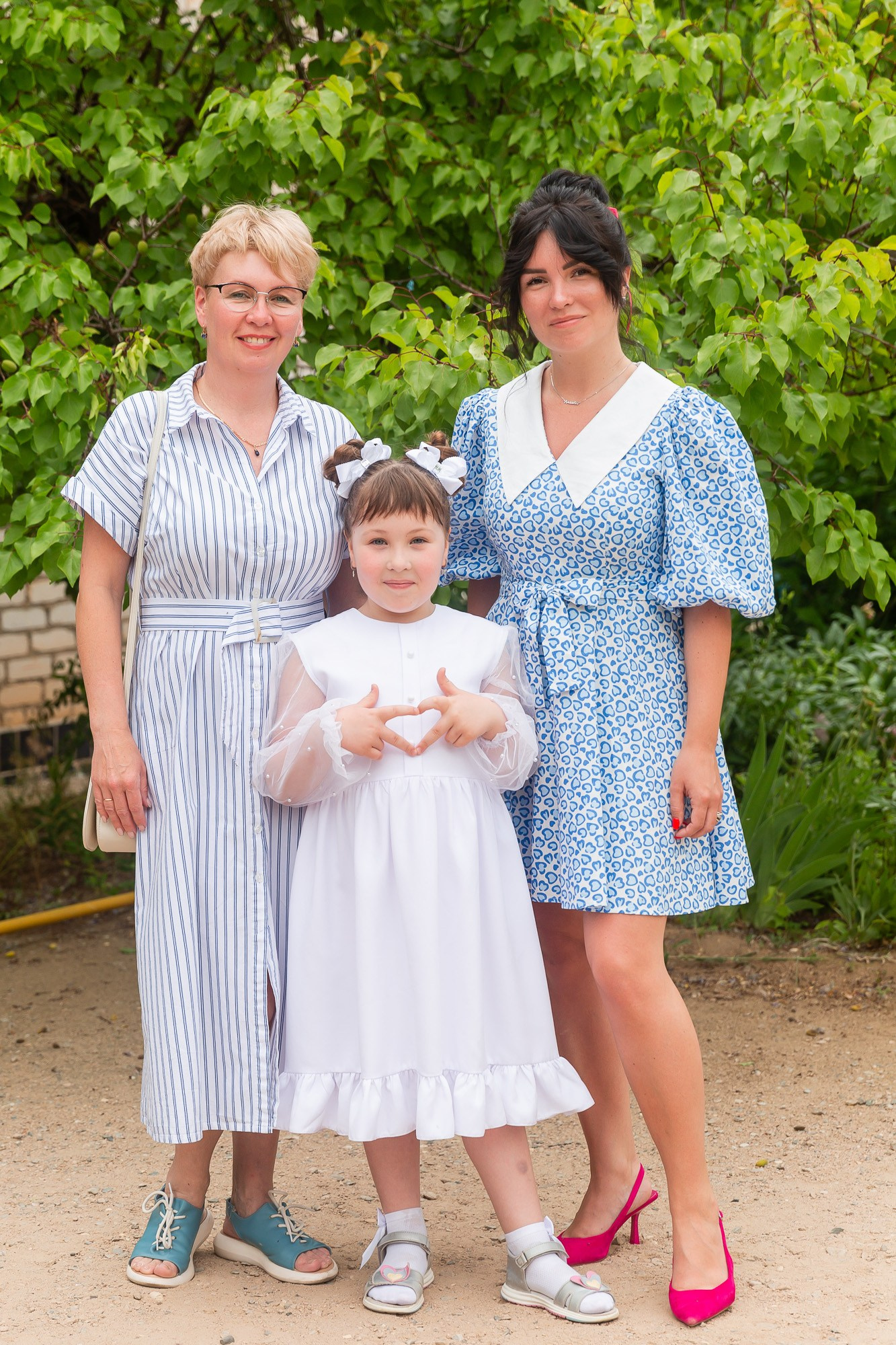 - кадры на улице — выпускники с родителями, братьями-сёстрами и друг с другом;