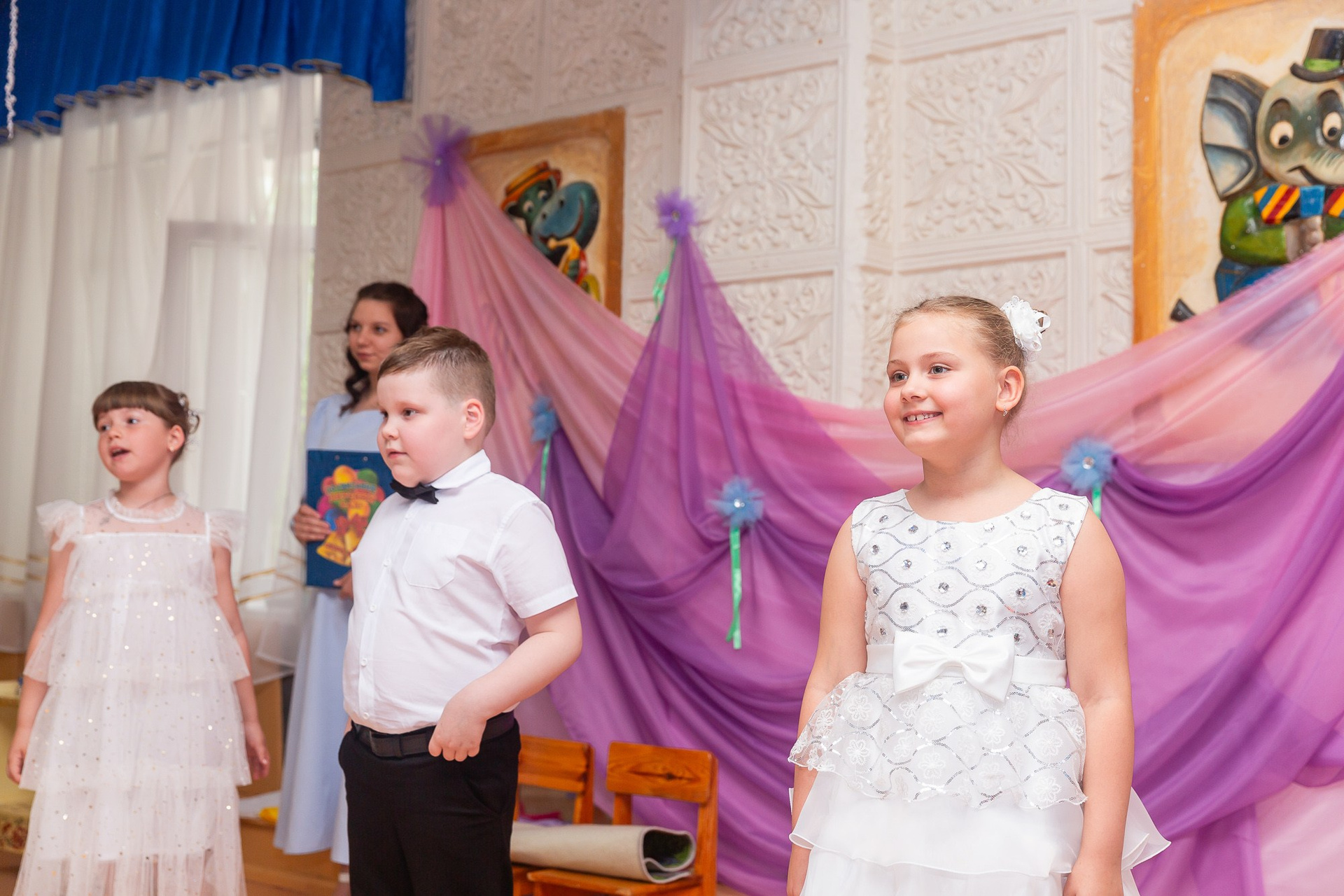 В процессе утренника снимаю не только общие кадры, но и портреты каждого ребёнка крупным планом.